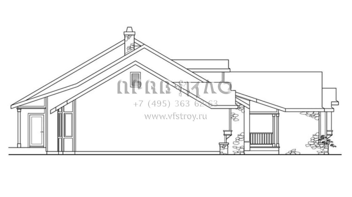 Большая площадь участка позволяет выбрать одноэтажный проект дома, особенно если в семье есть пожилые люди, инвалиды или маленькие дети.