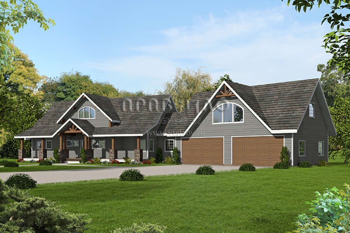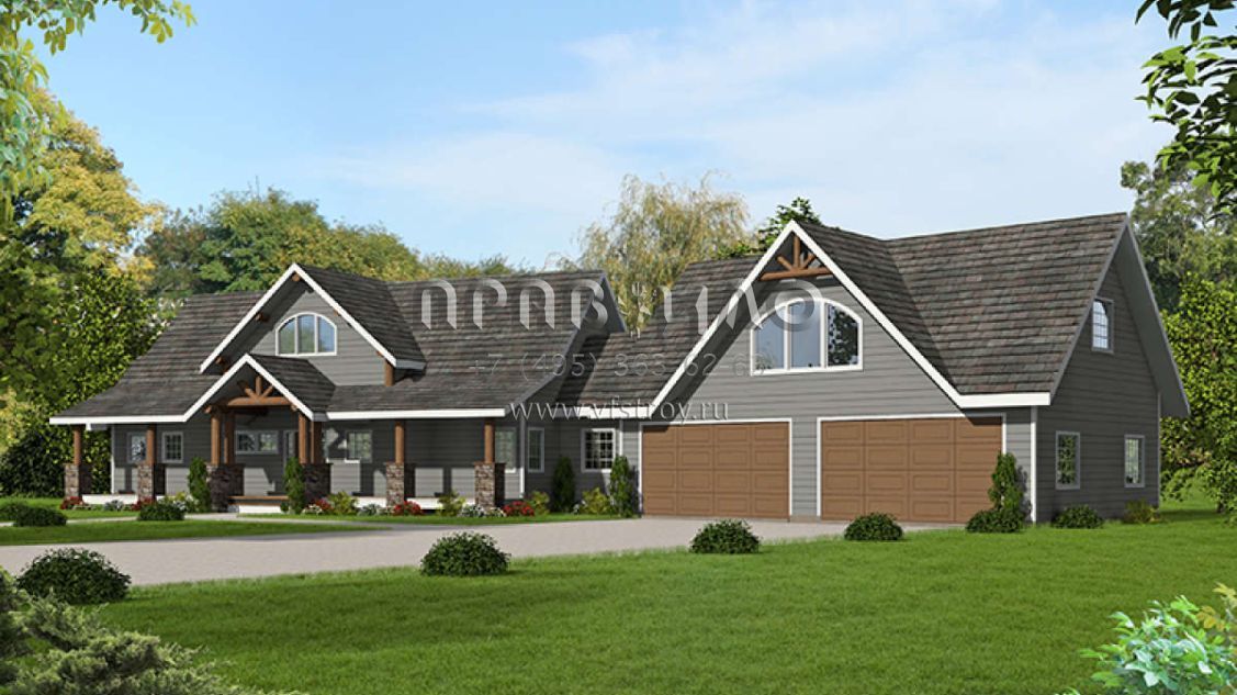 Проект двухэтажного дома с гаражом на две машины в стиле Шале S5-255 (039-00686)