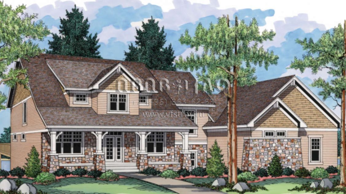 Проект двухэтажного дома с гаражом на три и более машин в английском стиле S5-255 (098-00043)