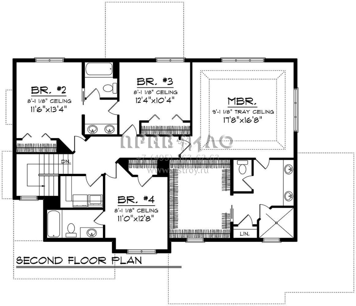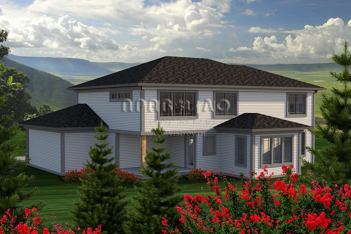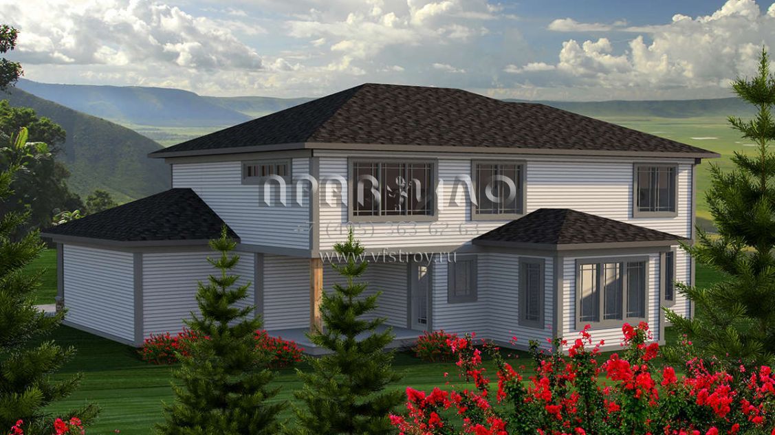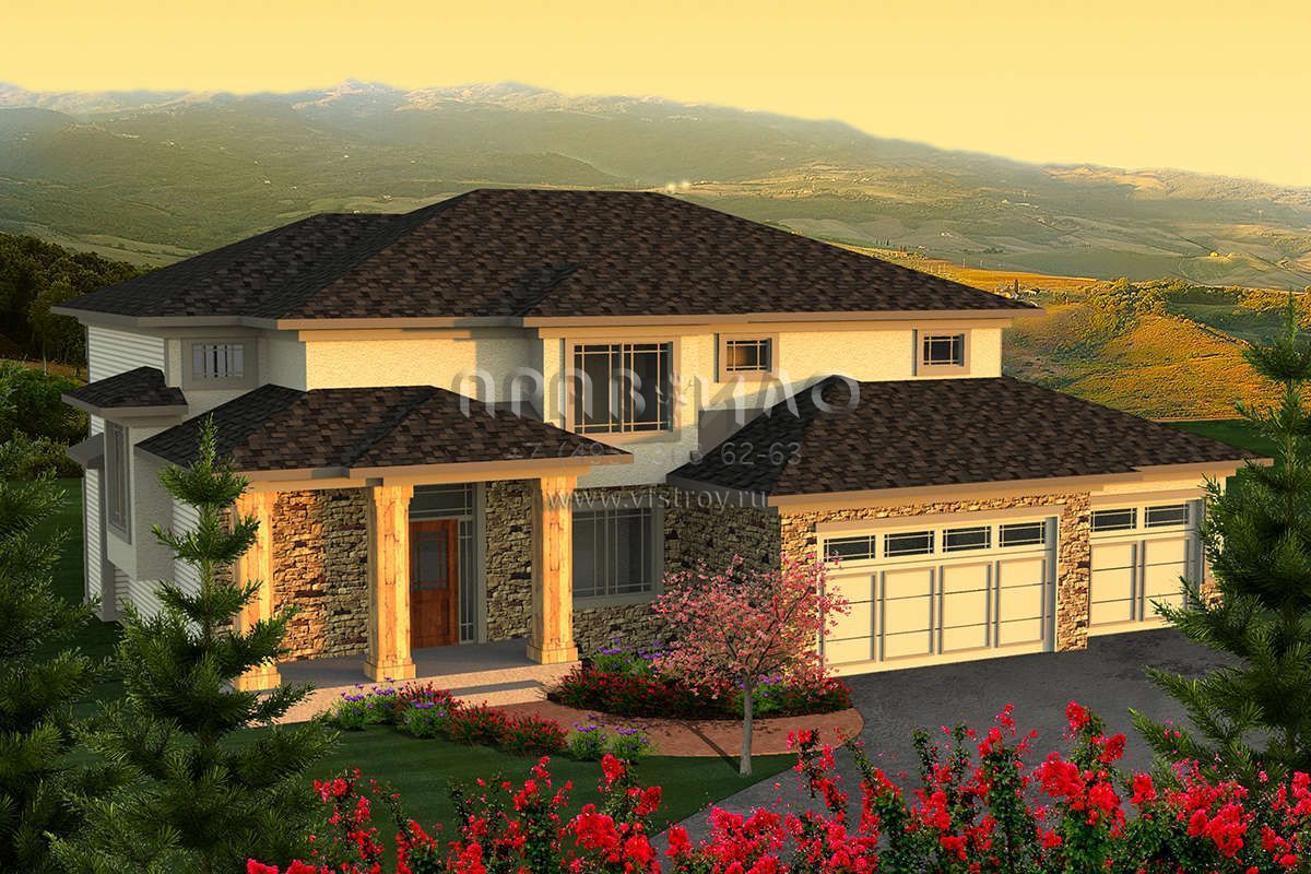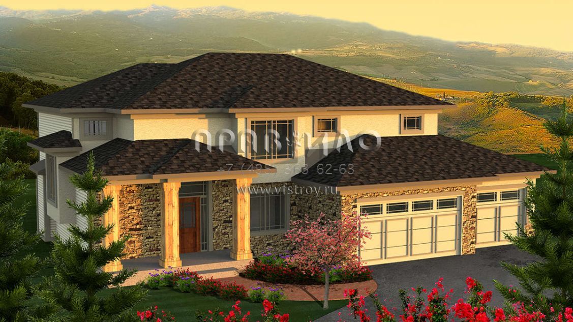 Проект двухэтажного дома с гаражом на три и более машин в стиле Райт S5-255 (1020-00154)