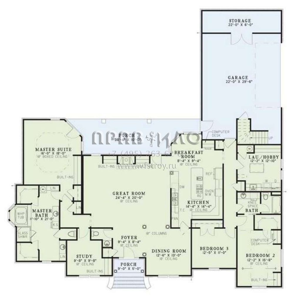 Поскольку этот проект разрабатывался иностранными архитекторами, для строительства дома требуется переработка проекта под действующие в России нормы. Данные визуализации проекта представлены для ознакомления с концепцией проекта. Проект разработан американским архитектурным бюро и представлен America's Best House Plans.