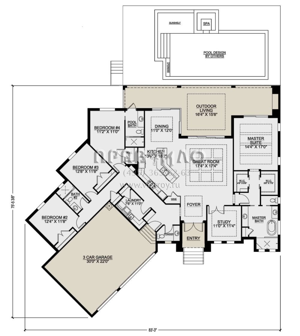 Поскольку этот проект разрабатывался иностранными архитекторами, для строительства дома требуется переработка проекта под действующие в России нормы. Данные визуализации проекта представлены для ознакомления с концепцией проекта. Проект разработан американским архитектурным бюро и представлен America's Best House Plans.