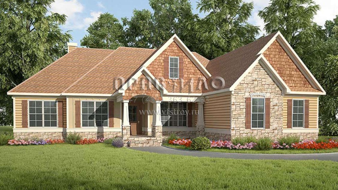 Проект одноэтажного дома с гаражом на две машины в американском стиле S5-255 (6082-00018)