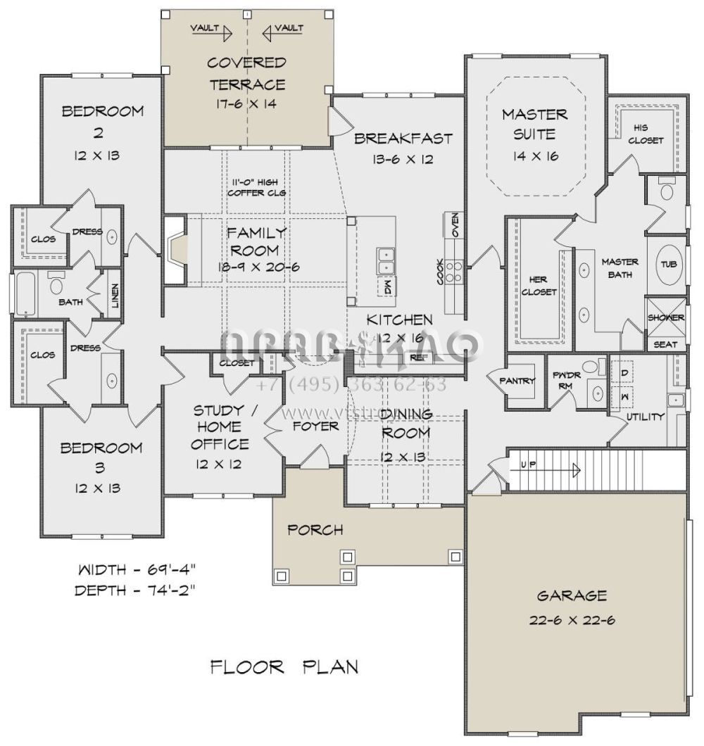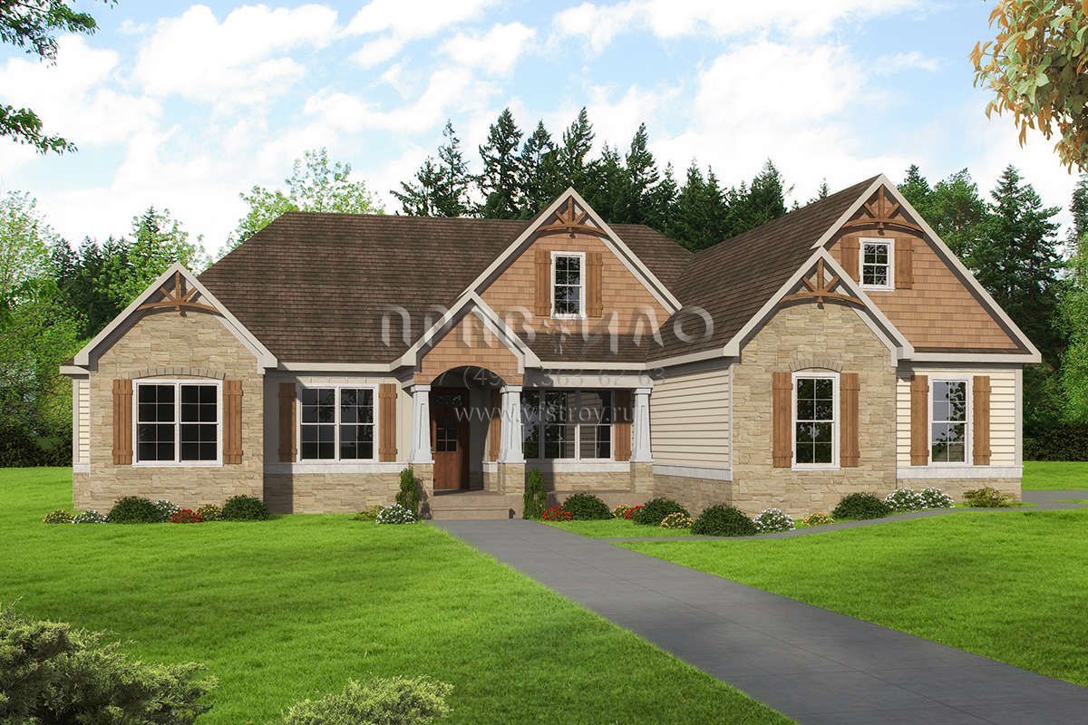 Проект одноэтажного дома с гаражом на две машины в американском стиле S5-255 (6082-00154)