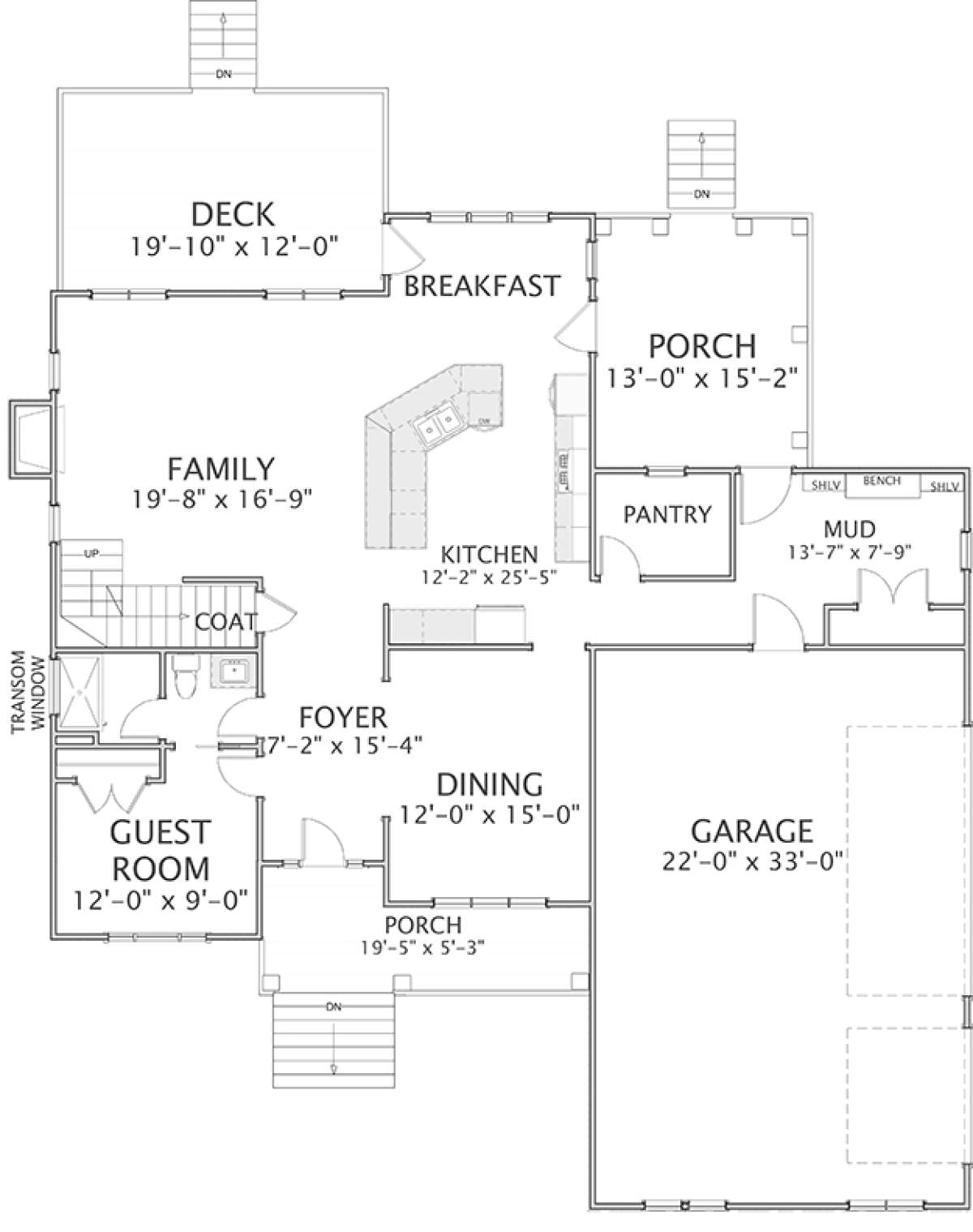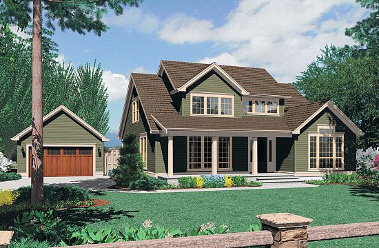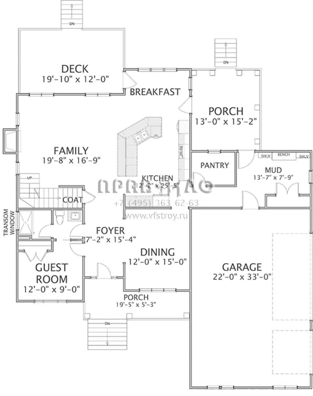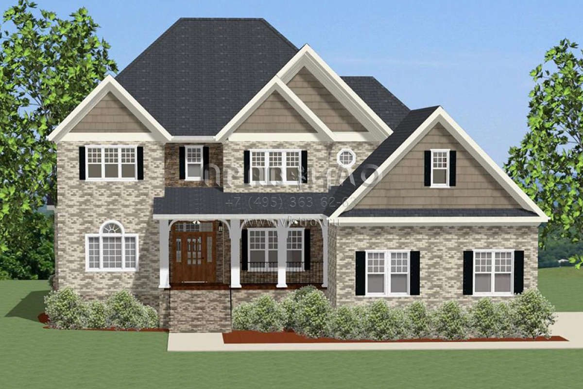 Проект двухэтажного дома с гаражом на три и более машин в стиле Ранчо S5-255 (6849-00032)