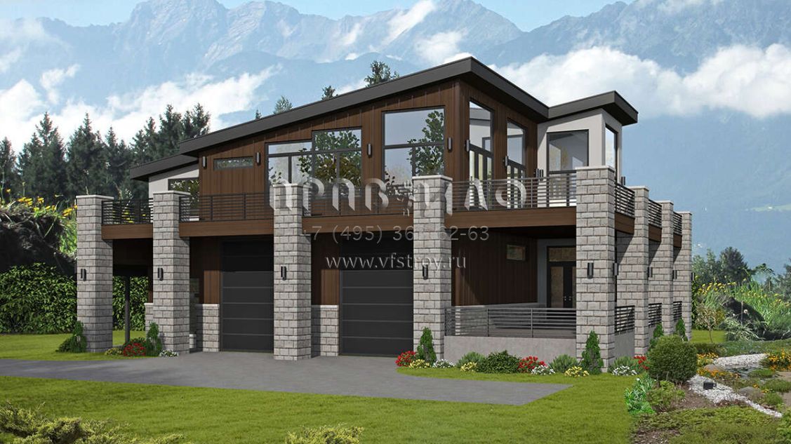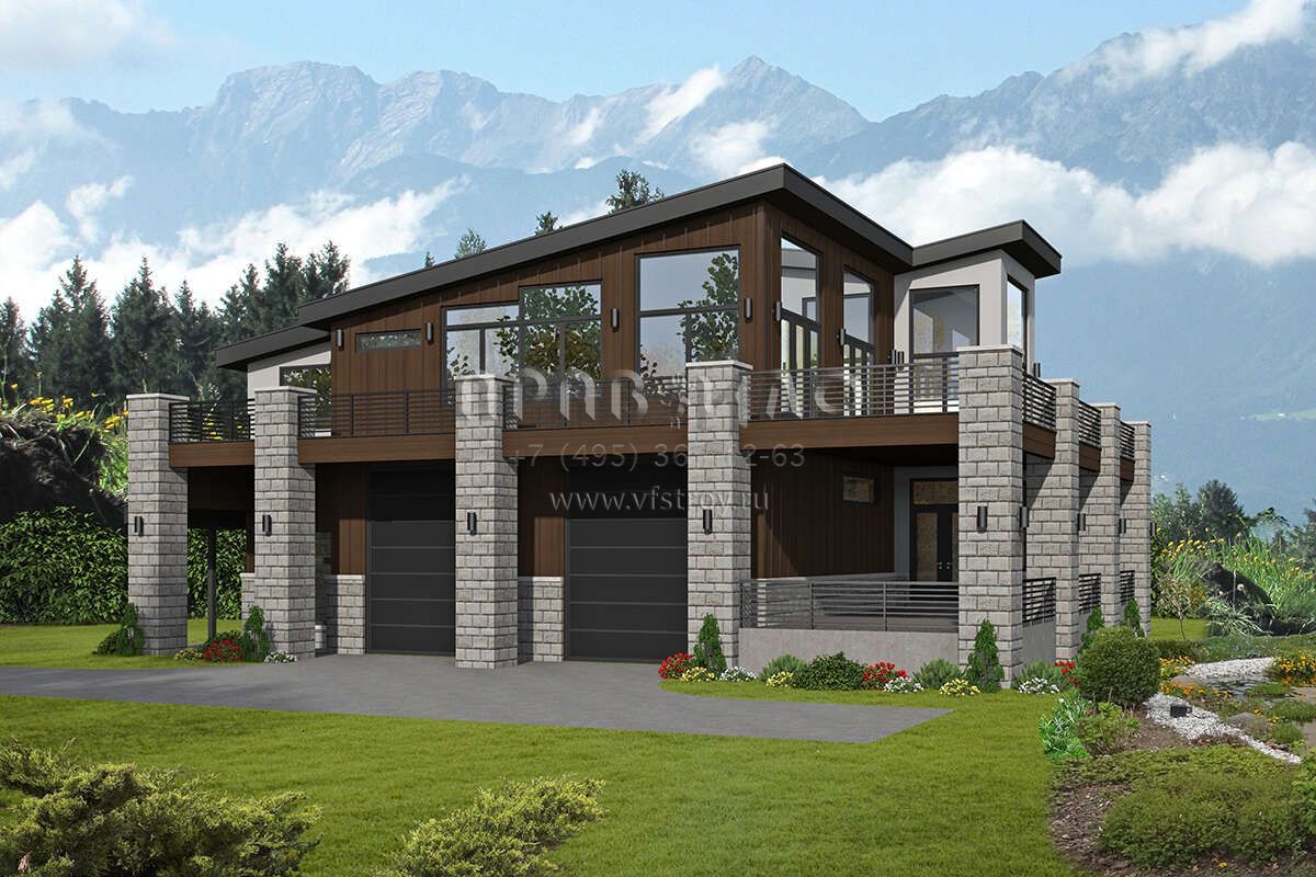 Проект двухэтажного дома с гаражом на три и более машин в современном стиле S5-255 (940-00454)