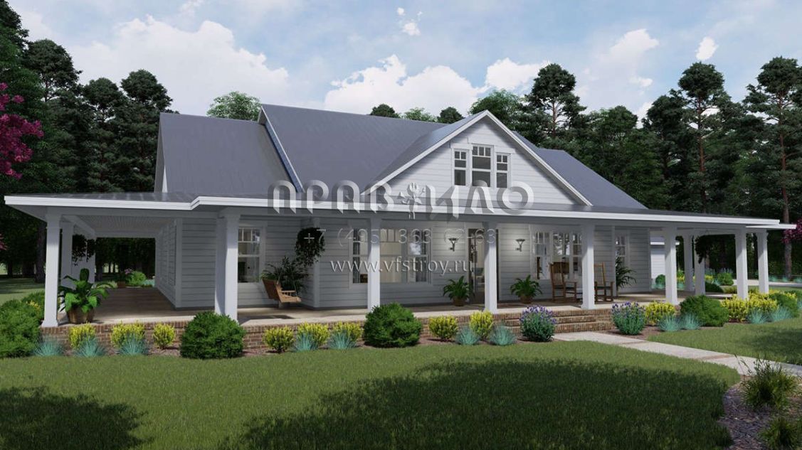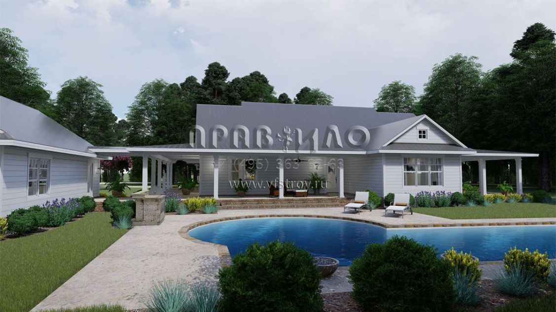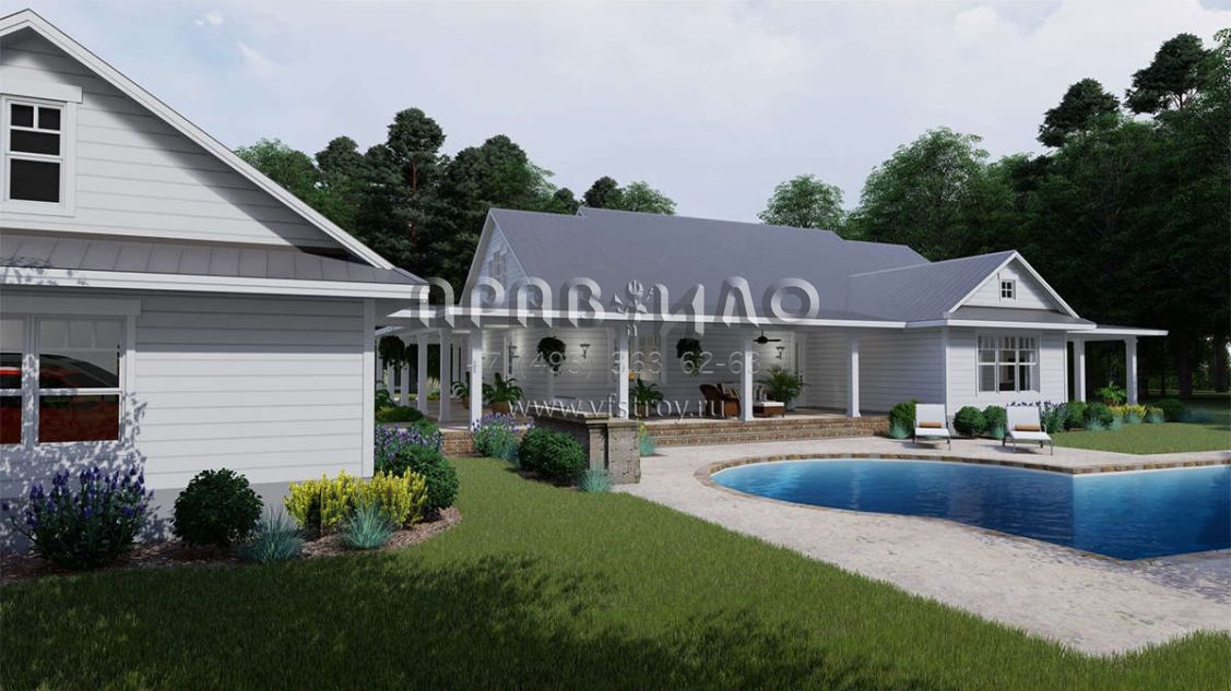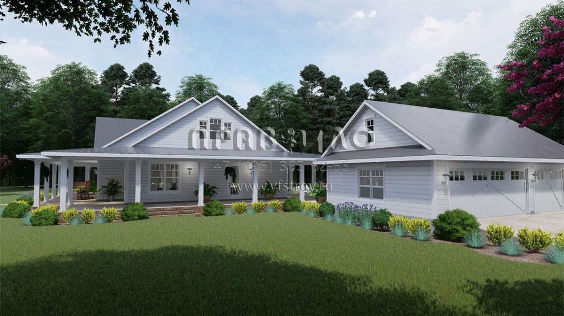 Проект одноэтажного дома с гаражом на три и более машин в стиле Ранчо S5-255 (9401-00095)