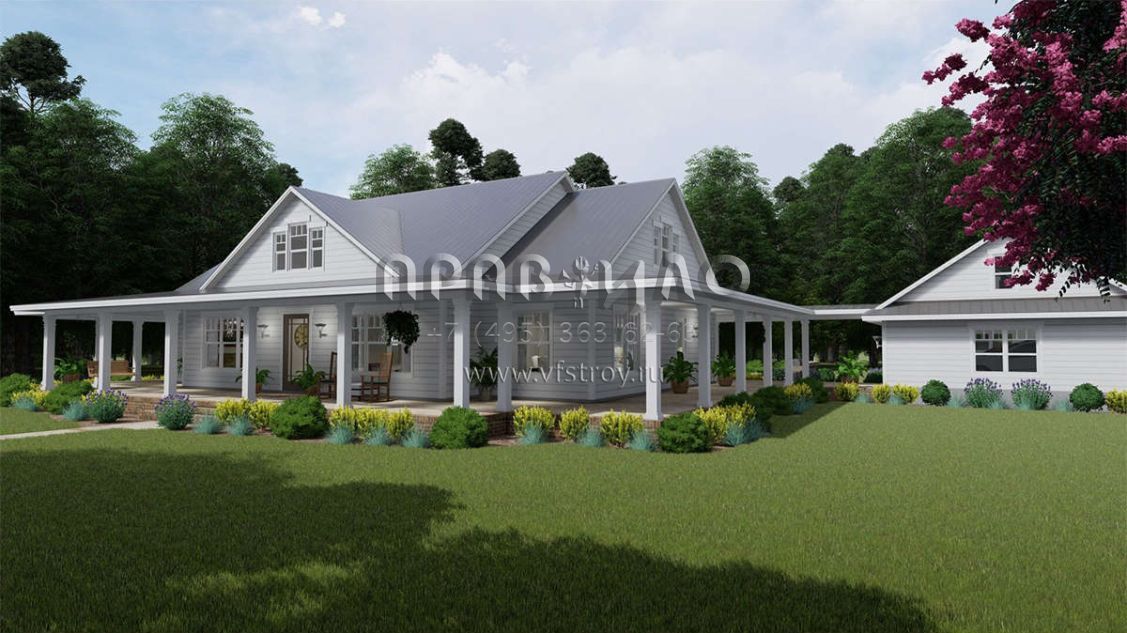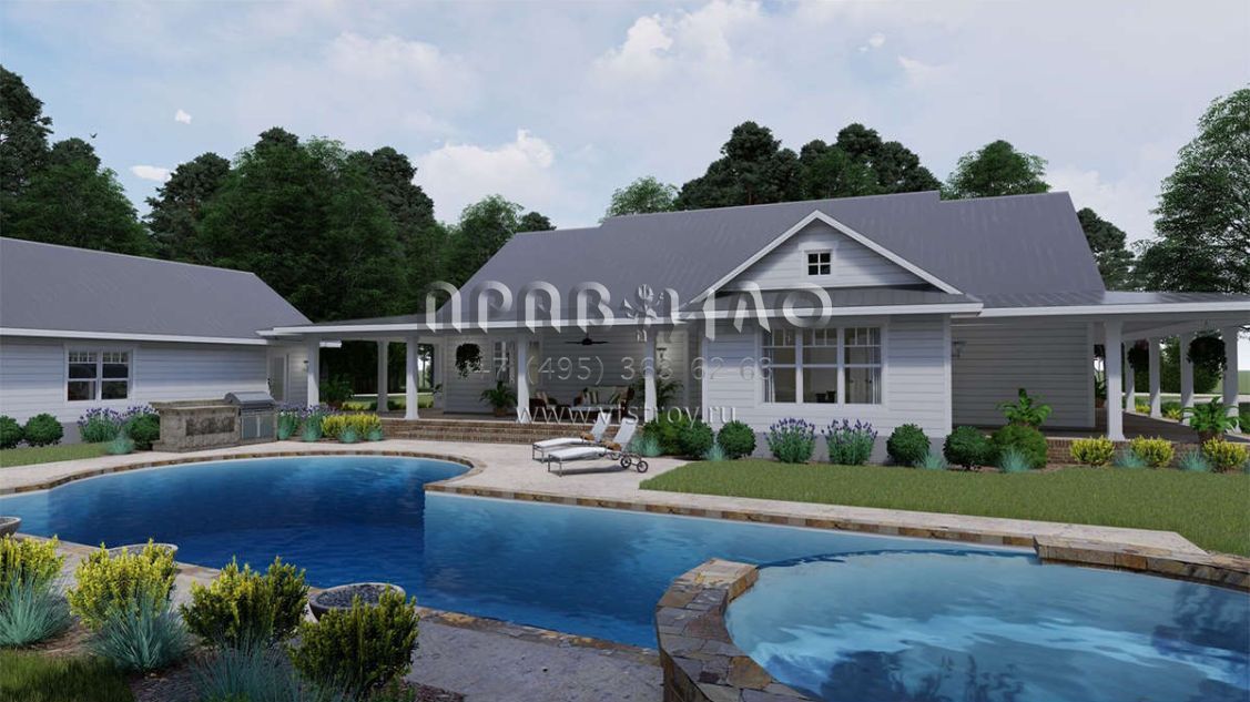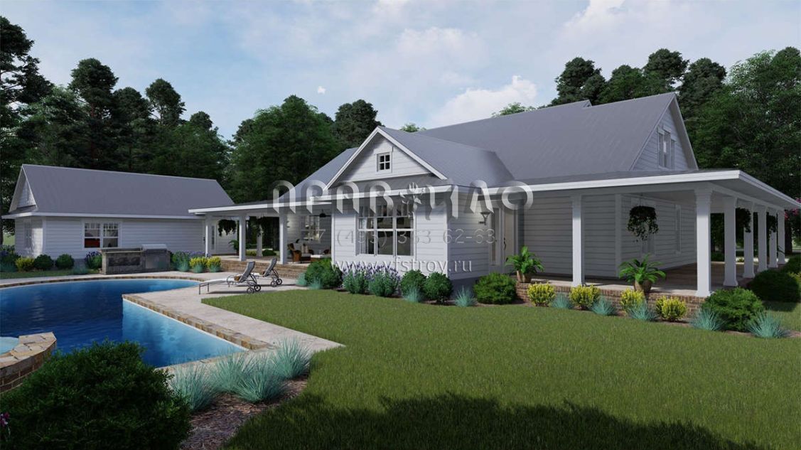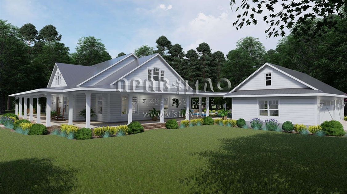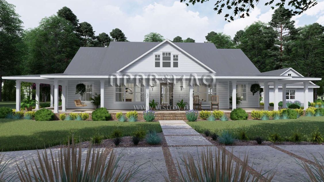 Проект одноэтажного дома с гаражом на три и более машин в стиле Ранчо S5-255 (9401-00095)