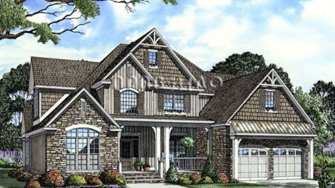 Проект двухэтажного дома с гаражом на две машины в стиле Ранчо S5-256 (110-00700)