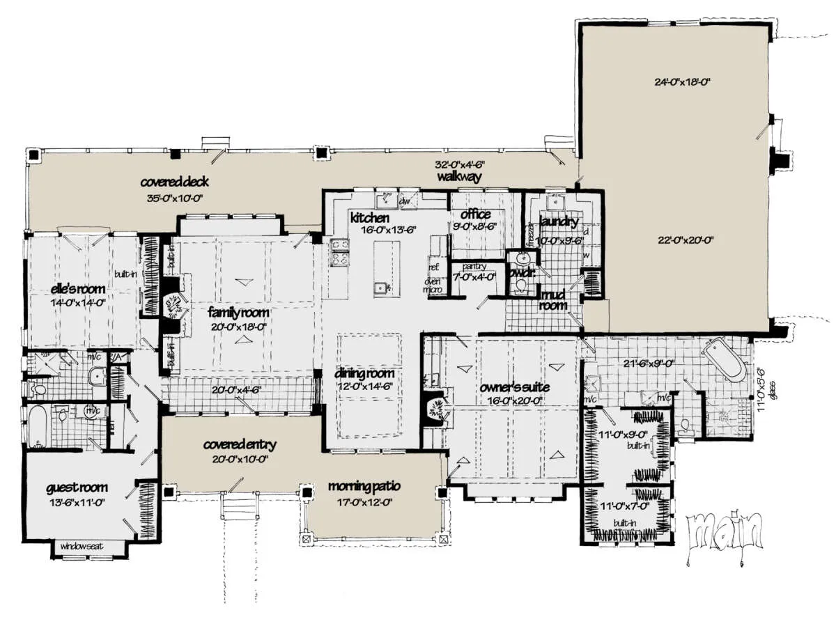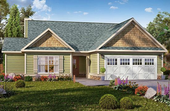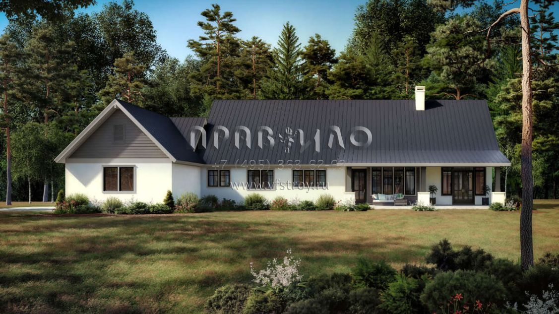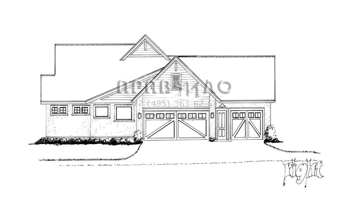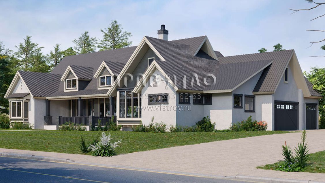Проект одноэтажного дома с гаражом на три и более машин в американском стиле S5-256 (1907-00056)