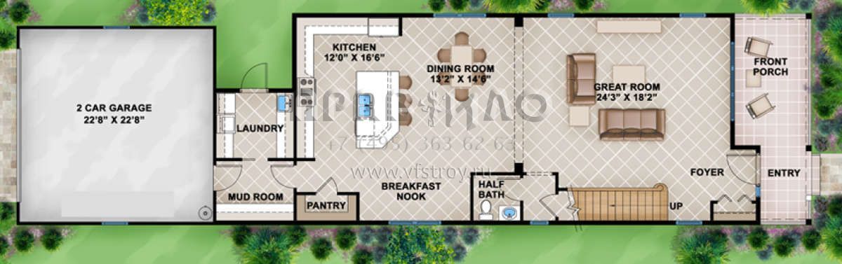 Поскольку этот проект разрабатывался иностранными архитекторами, для строительства дома требуется переработка проекта под действующие в России нормы. Данные визуализации проекта представлены для ознакомления с концепцией проекта. Проект разработан американским архитектурным бюро и представлен America's Best House Plans.