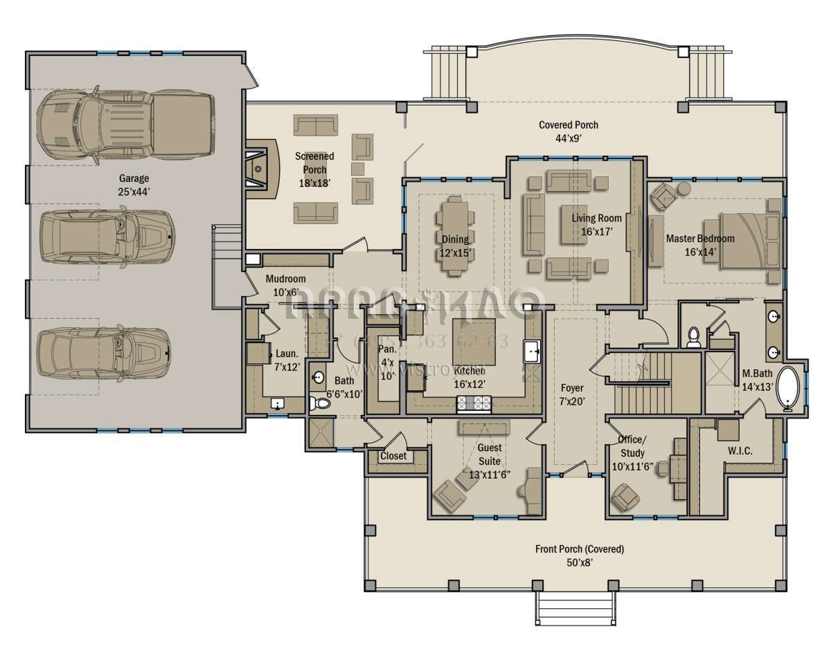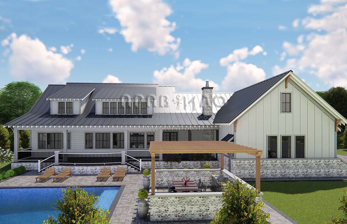 Поскольку этот проект разрабатывался иностранными архитекторами, для строительства дома требуется переработка проекта под действующие в России нормы. Данные визуализации проекта представлены для ознакомления с концепцией проекта. Проект разработан американским архитектурным бюро и представлен America's Best House Plans.