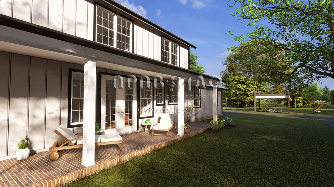 S5-256 (4848-00386) Это иностранный проект, для которого требуется адаптация под нормы, действующие в Российской Федерации. Вы видите проект дома в стиле БарнХаус. В этом доме сочетаются черты сельской постройки и аскетичность лофта. Внутри жильцы смогут проводить время с максимальным комфортом. Обратим внимание, что сейчас на планировках все размеры представлены в футах. Для перевода в метры вам необходимо значение в футах умножить на 0,3048.