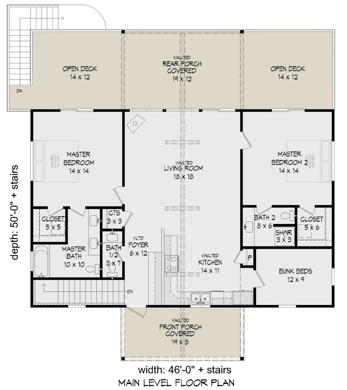 Проект двухэтажного дома без гаража в стиле Ранчо S5-256 (940-00303)