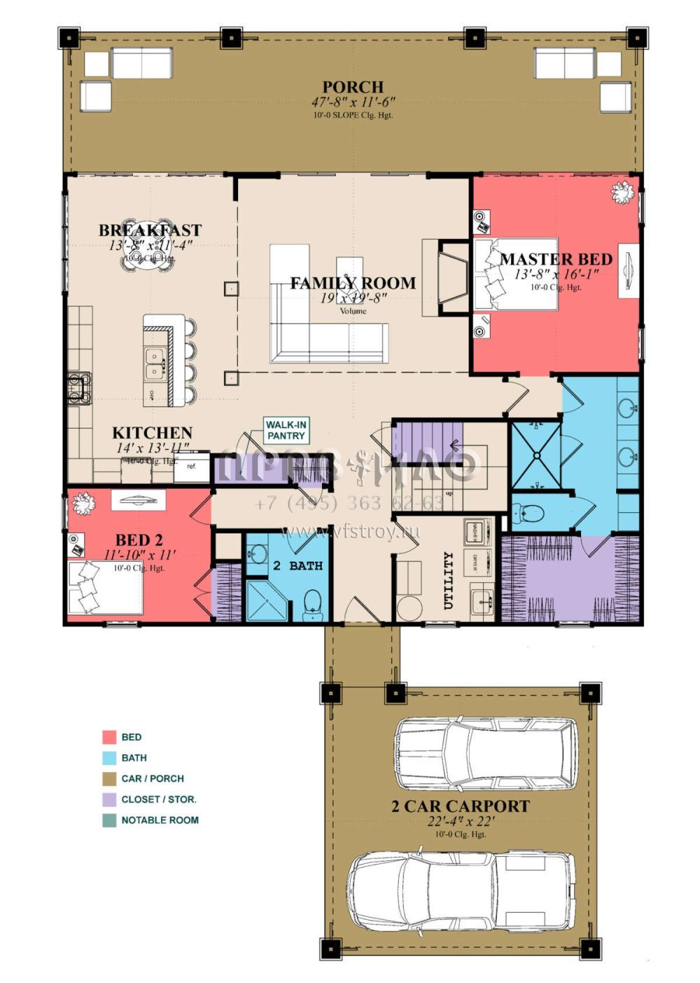 Проект двухэтажного дома с гаражом на две машины в стиле Ранчо S5-257 (1070-00302)