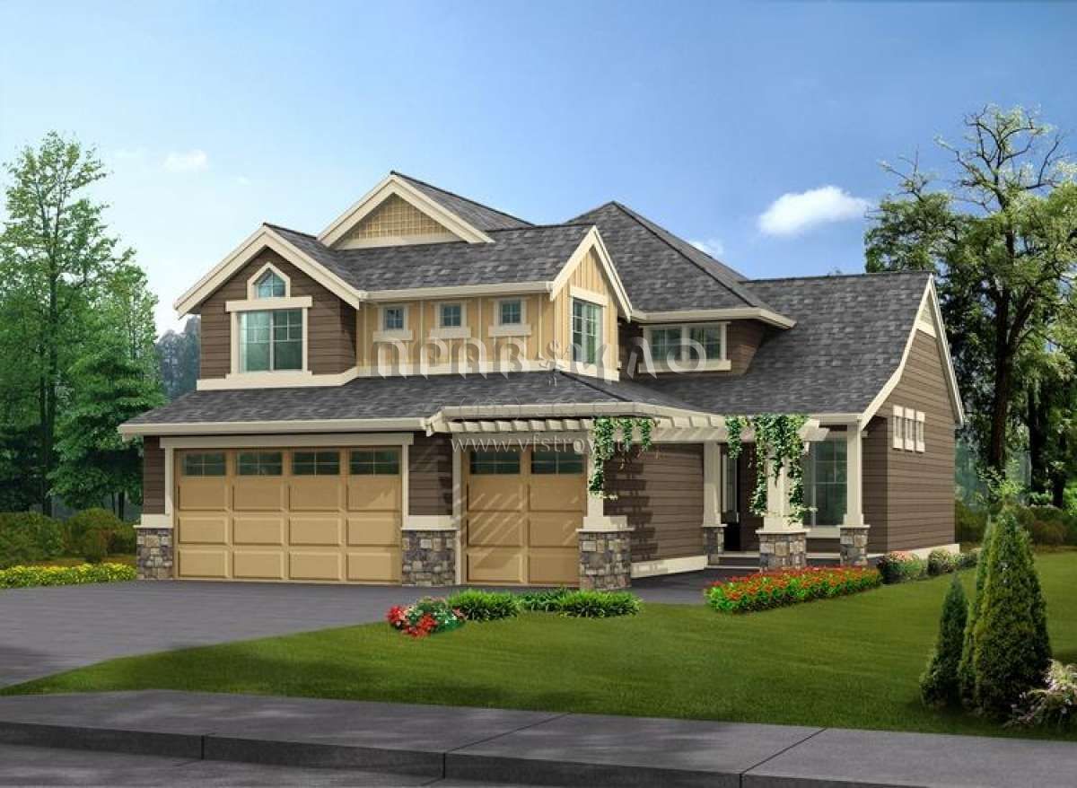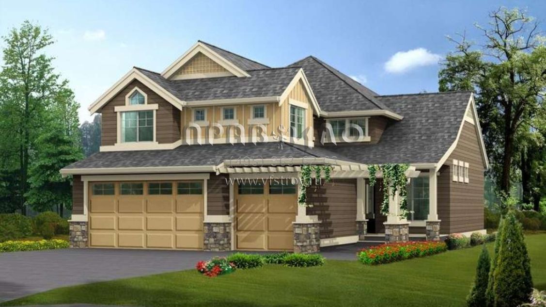Проект двухэтажного дома с гаражом на три и более машин в стиле Шале S5-257 (341-00074)
