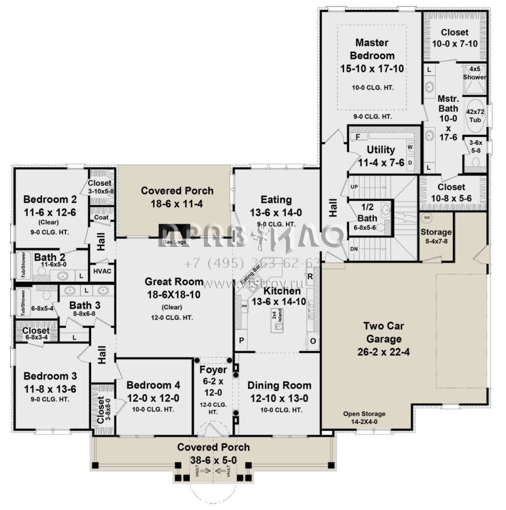 Проект одноэтажного дома с гаражом на две машины в стиле Ранчо S5-257 (348-00160)