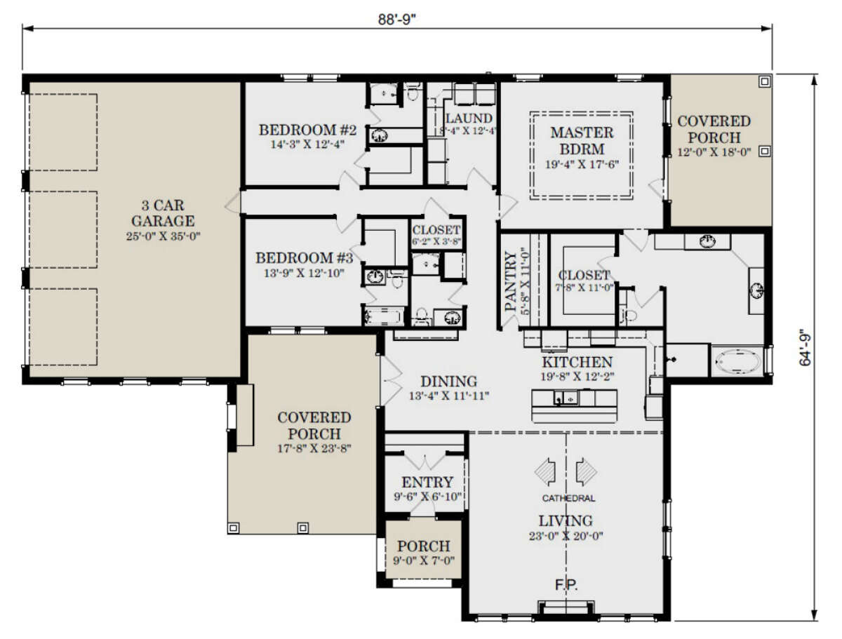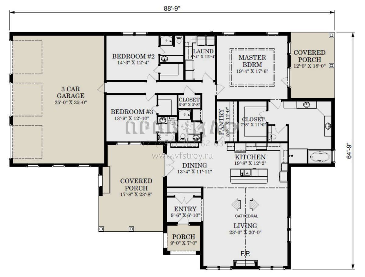 Проект одноэтажного дома с гаражом на три и более машин в стиле Ранчо S5-257 (3558-00010)