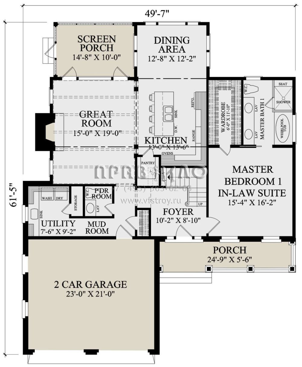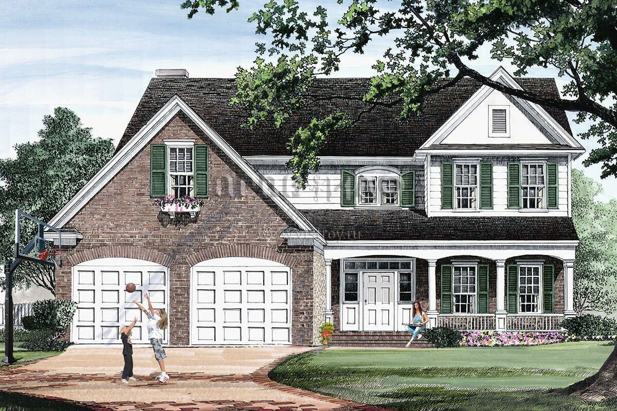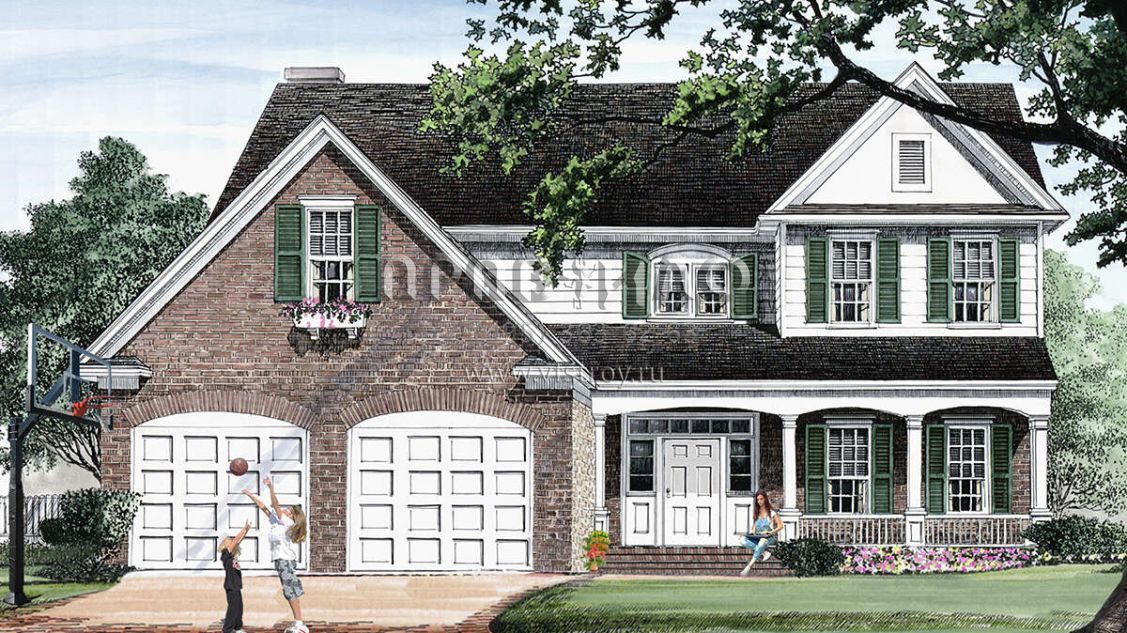 Проект двухэтажного дома с гаражом на две машины в стиле Ранчо S5-257 (7922-00239)