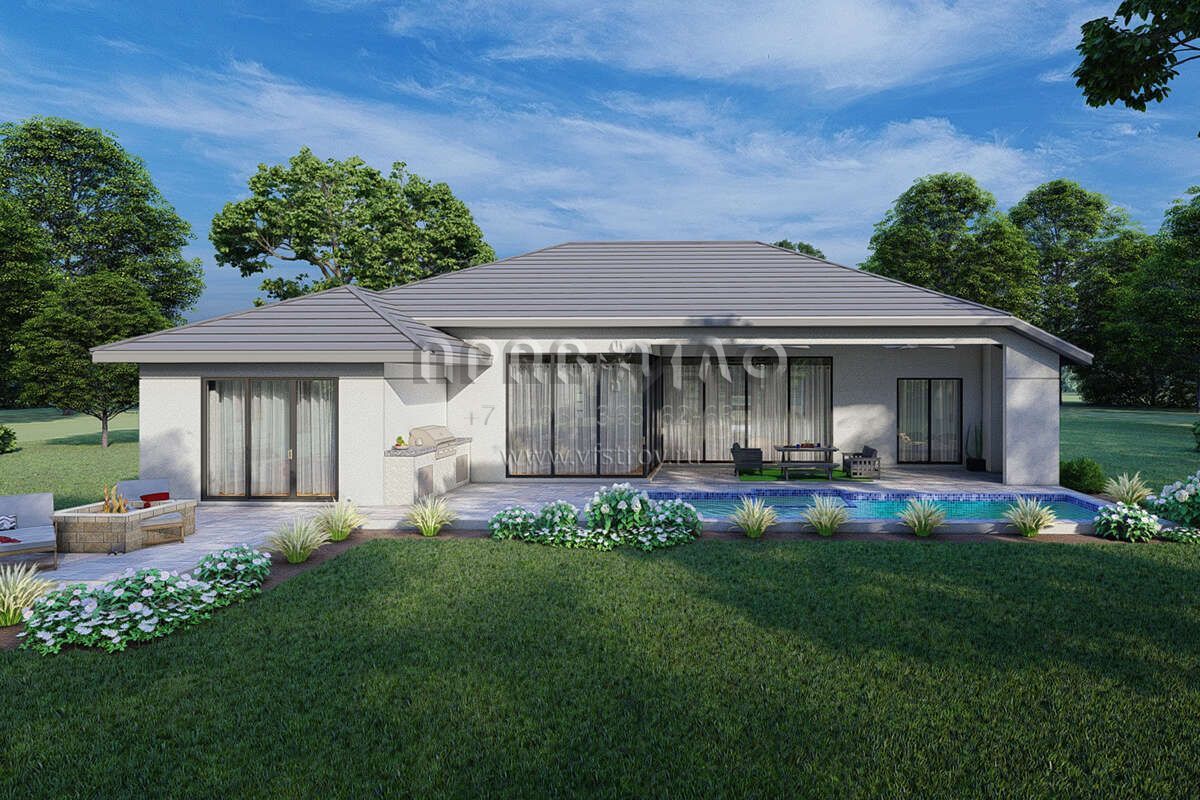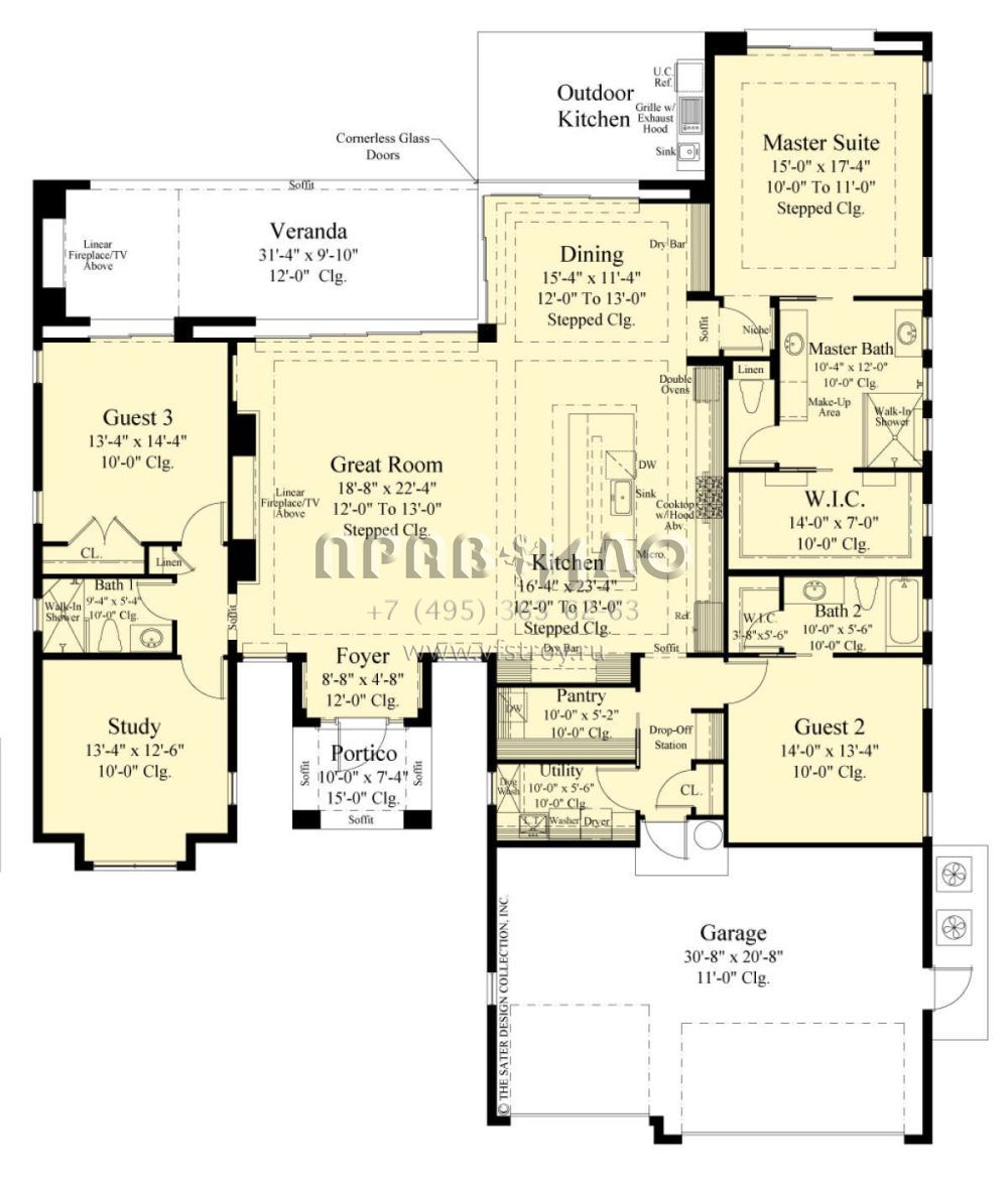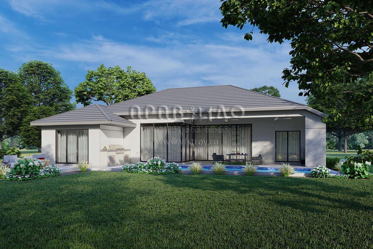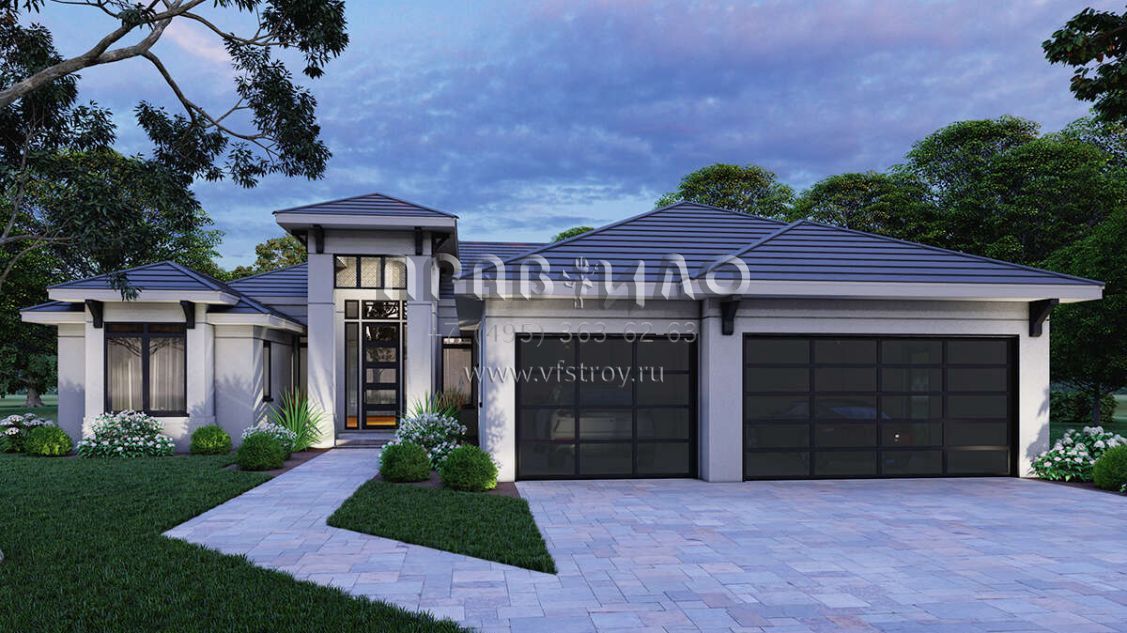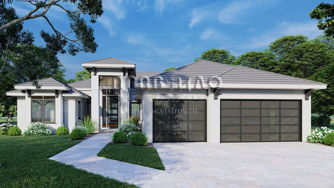 Проект одноэтажного дома с гаражом на три и более машин в современном стиле S5-257 (8436-00103)