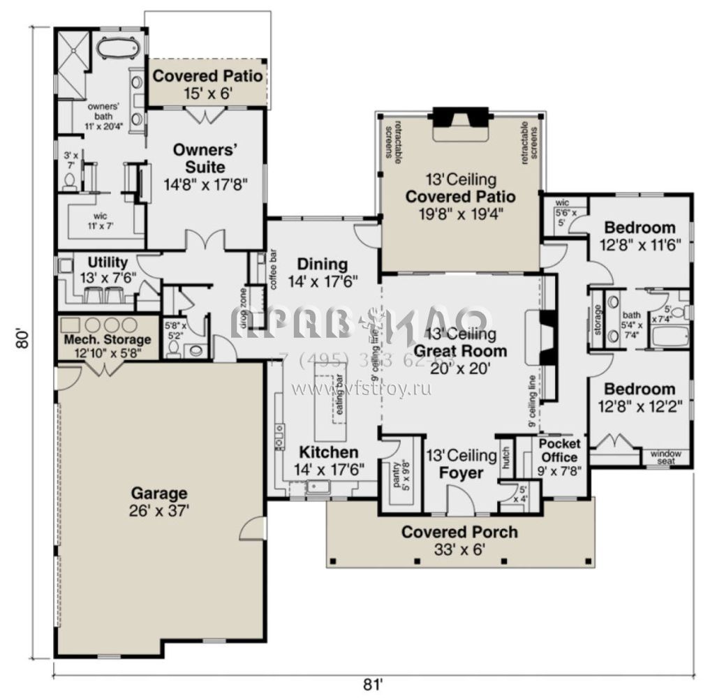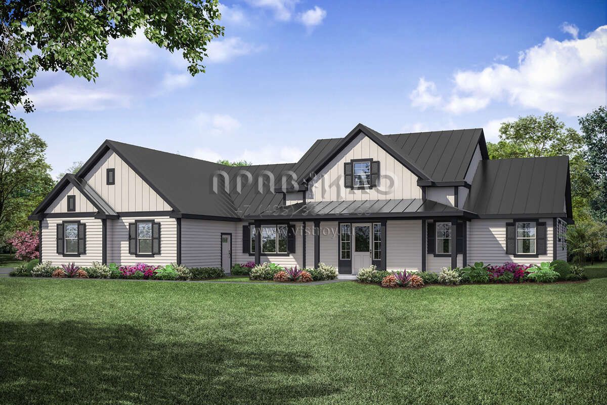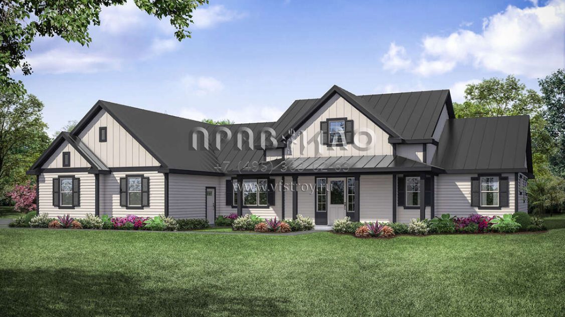 Проект одноэтажного дома с гаражом на три и более машин в стиле Ранчо S5-258 (035-00889)