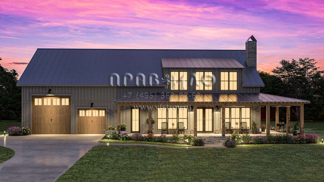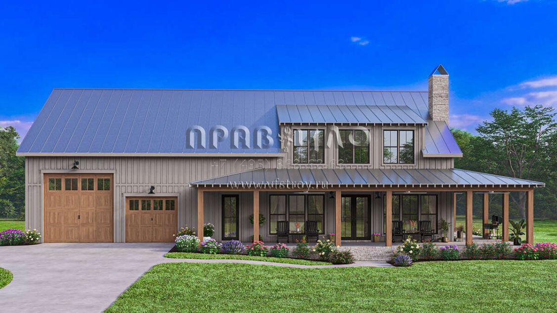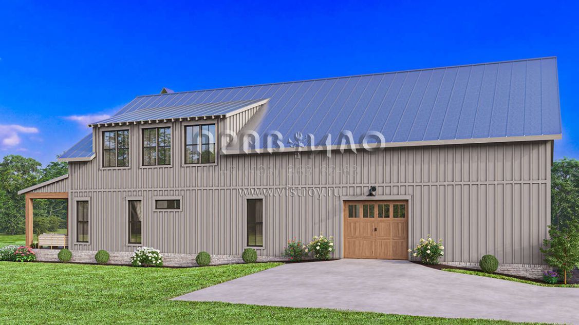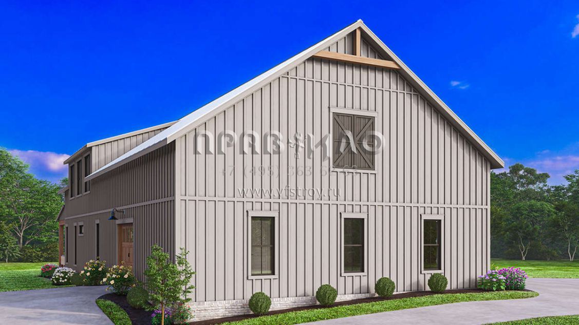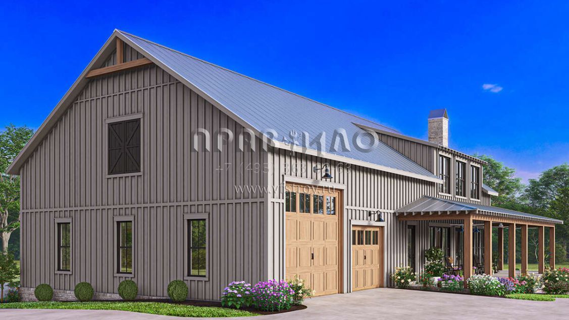 Проект двухэтажного дома с гаражом на три и более машин в стиле БарнХаус S5-258 (041-00341)