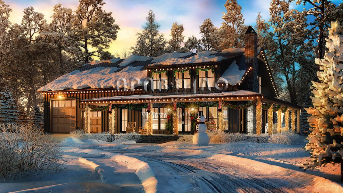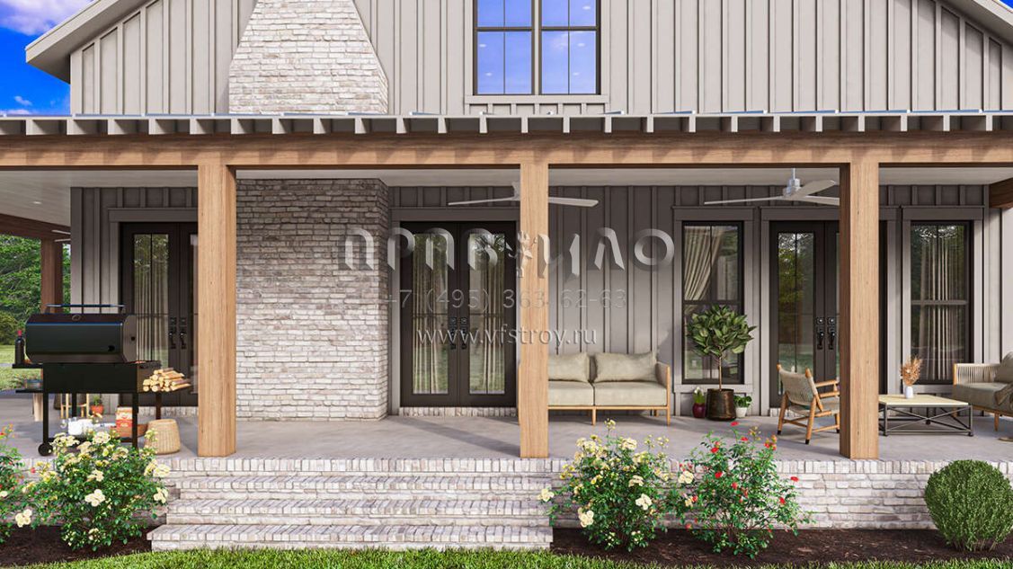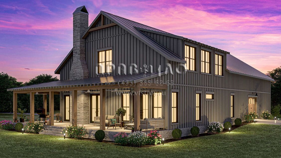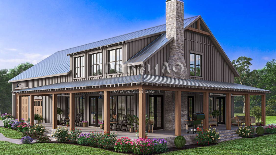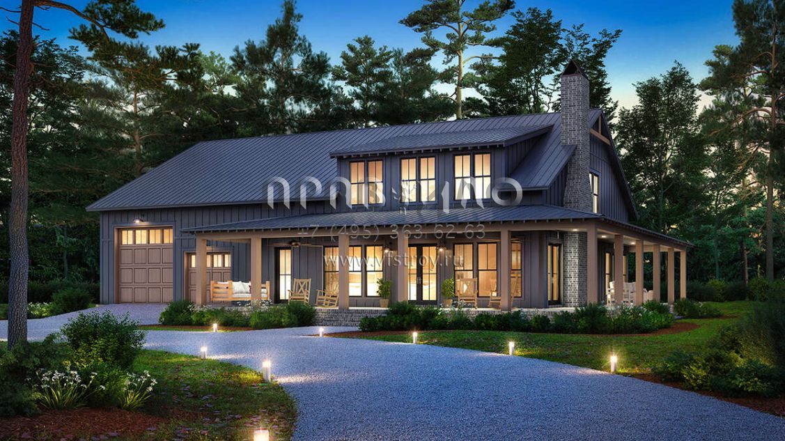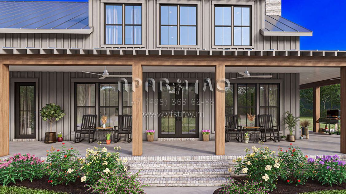 Проект двухэтажного дома с гаражом на три и более машин в стиле БарнХаус S5-258 (041-00341)