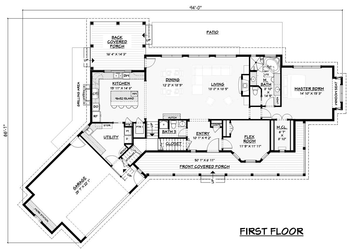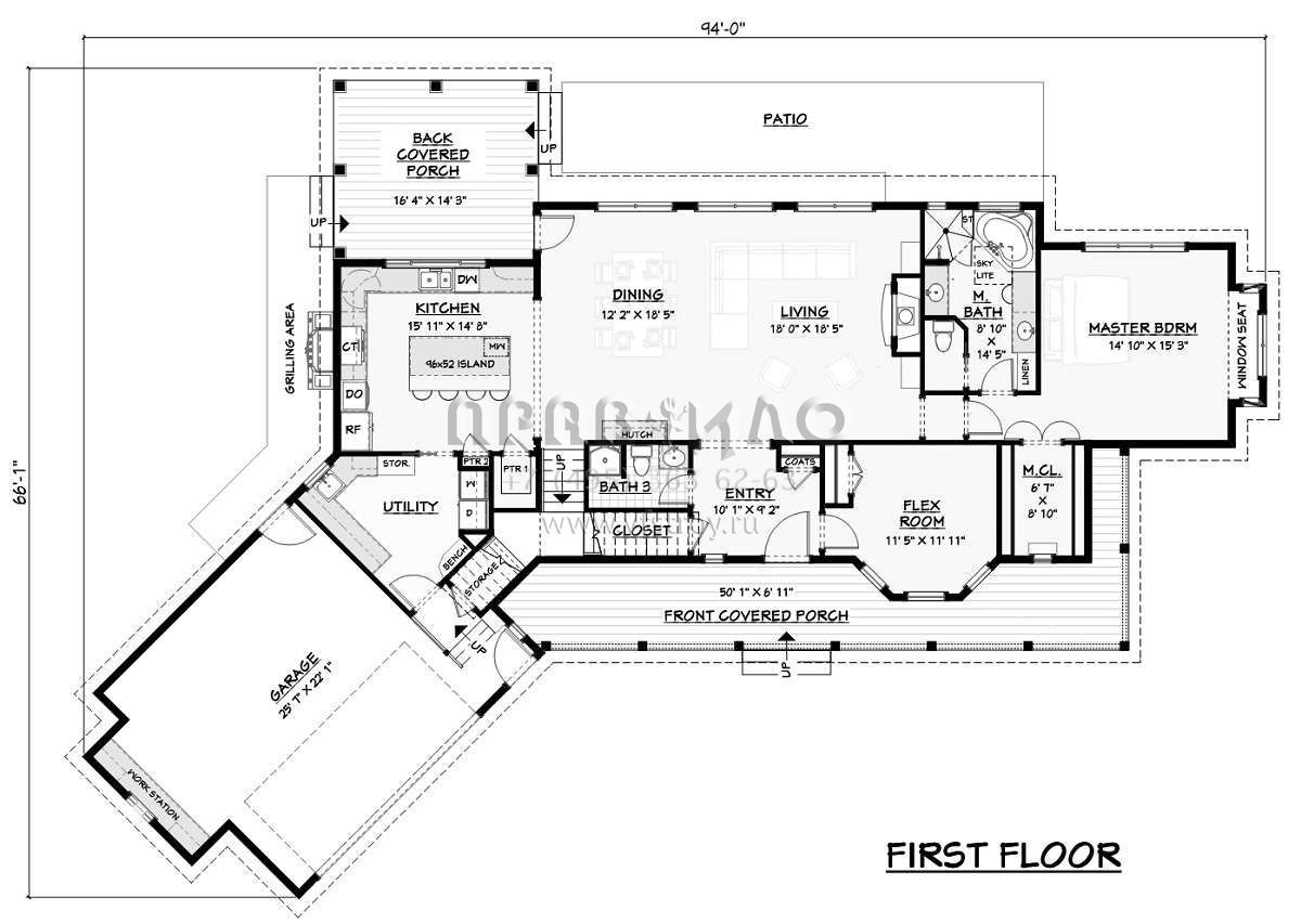 S5-258 (3125-00024) Это иностранный проект, для которого требуется адаптация под нормы, действующие в Российской Федерации. Вы видите проект дома в стиле Ранчо. В этом доме сочетаются черты сельской постройки и аскетичность лофта. Внутри жильцы смогут проводить время с максимальным комфортом. Обратим внимание, что сейчас на планировках все размеры представлены в футах. Для перевода в метры вам необходимо значение в футах умножить на 0,3048.
