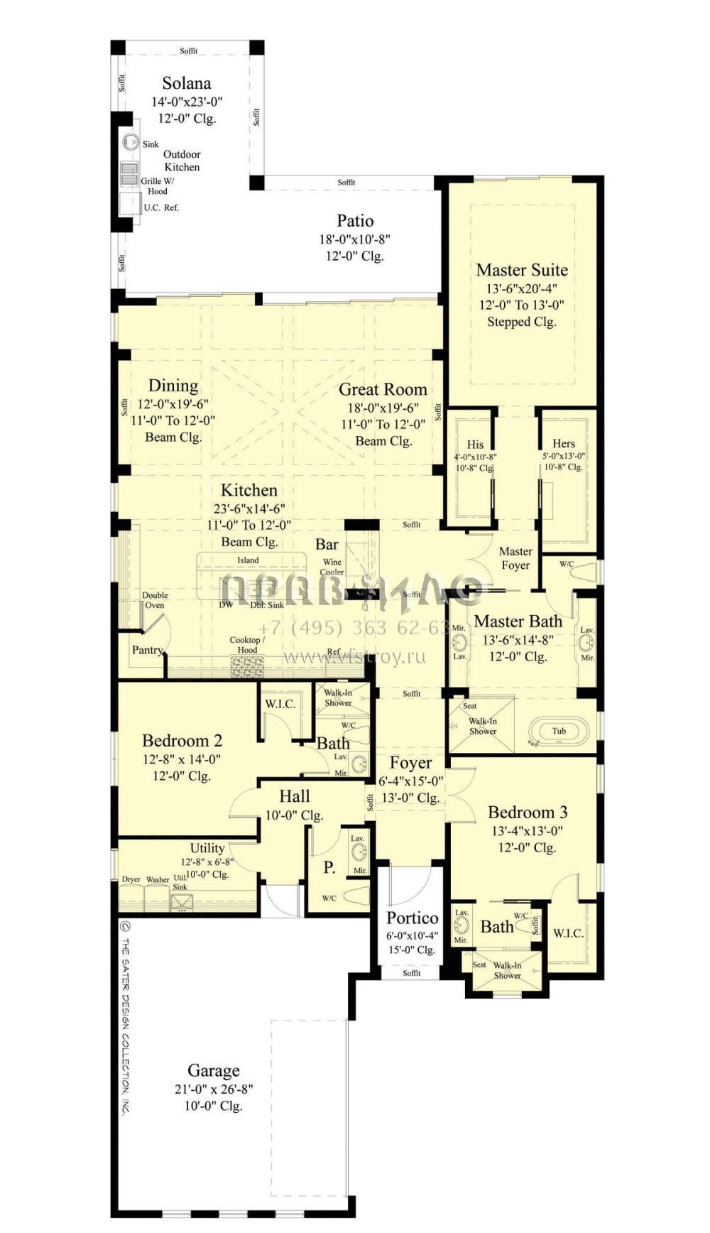 Проект одноэтажного дома с гаражом на две машины в прибрежном стиле S5-258 (8436-00001)