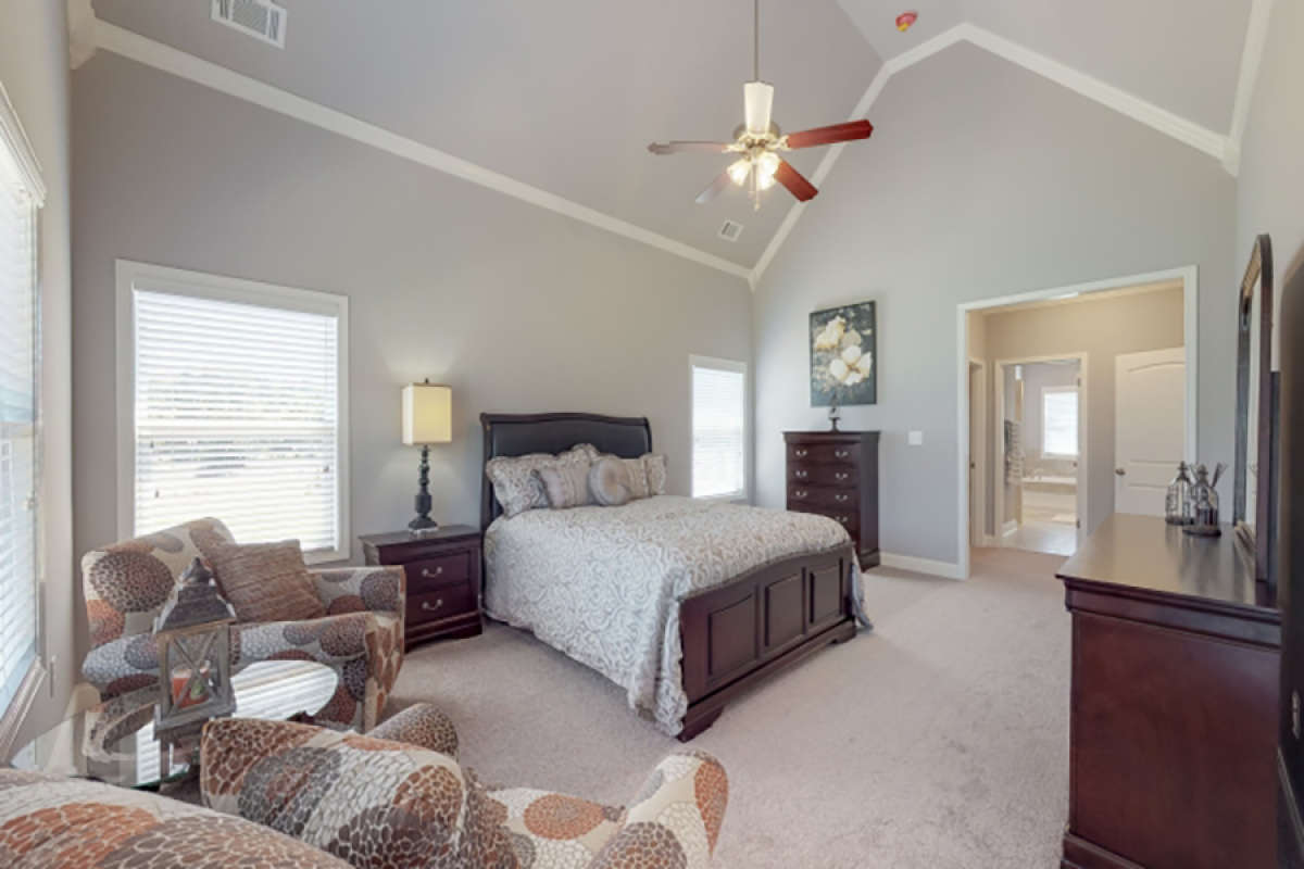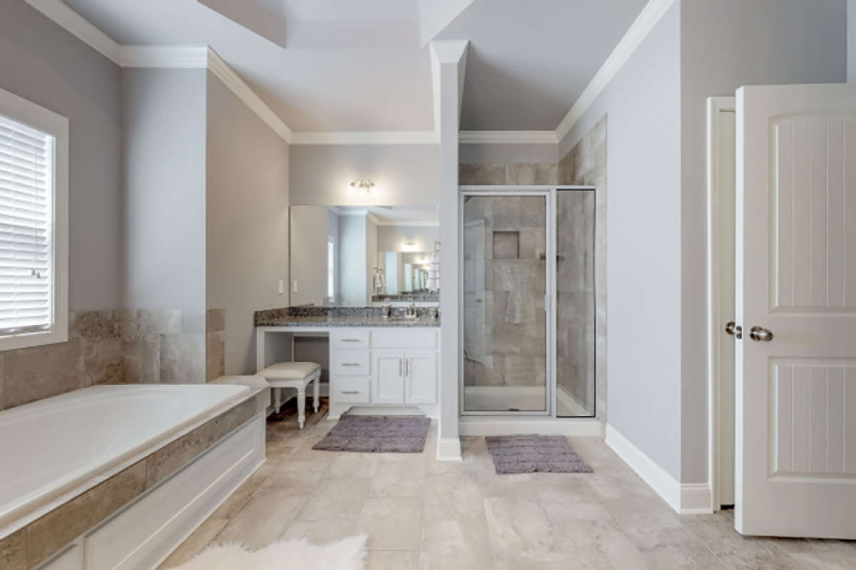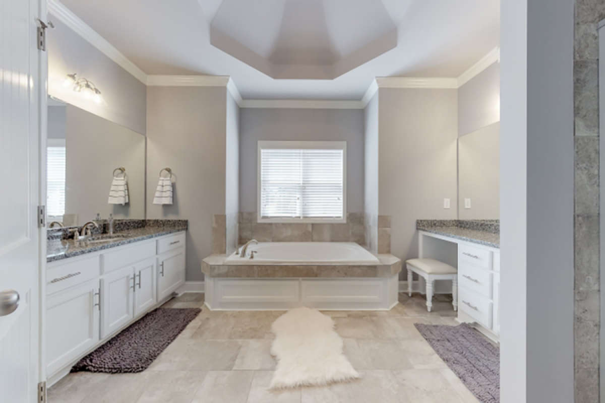 Это проект двухэтажного дома с гаражом на две машины жилой площадью 258 кв.м. Длина дома 15.8 м, ширина 18 м, высота 9.1 м. В доме четыре спальни и три санузла.