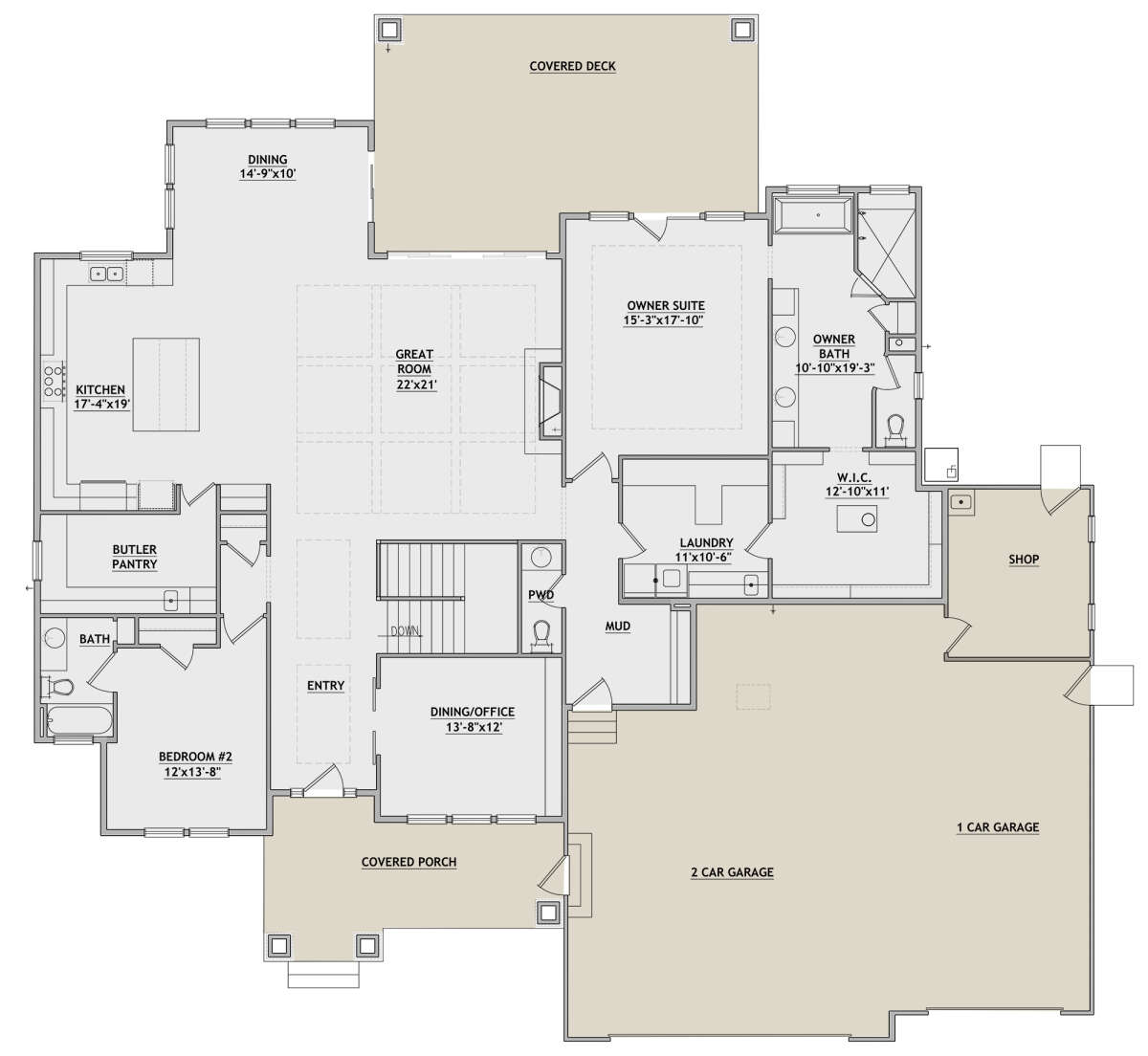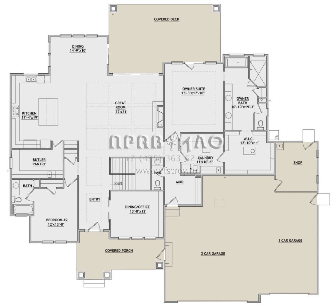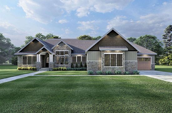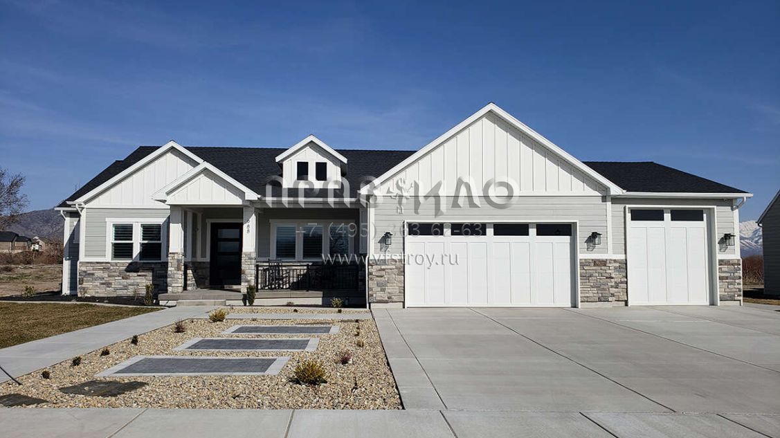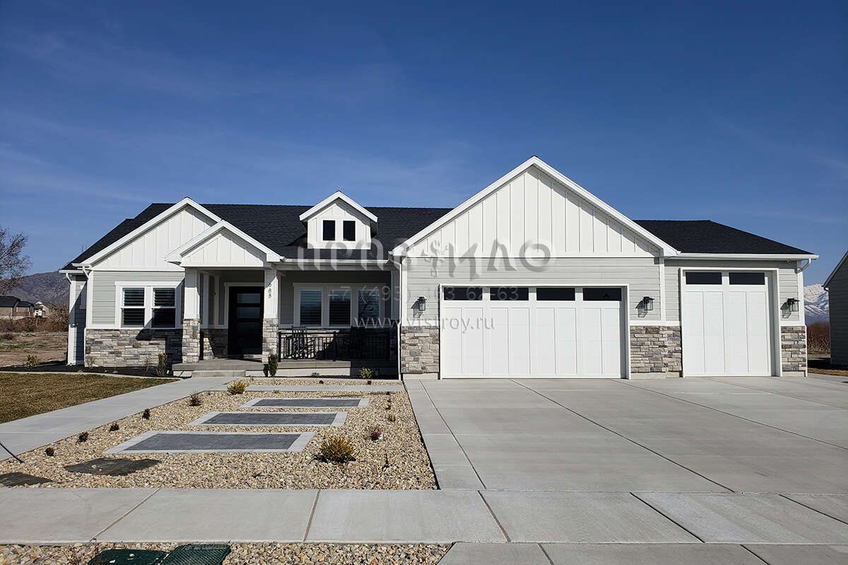 Проект одноэтажного дома с гаражом на три и более машин в американском стиле S5-258 (8768-00007)