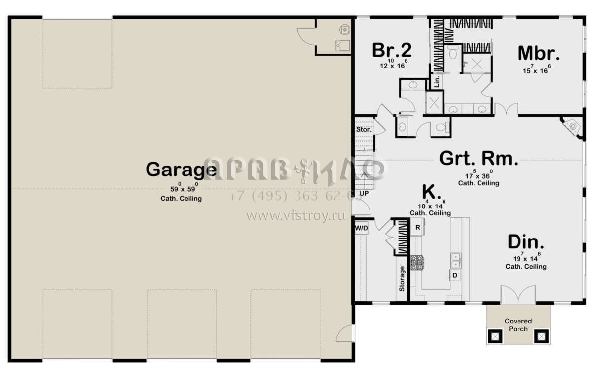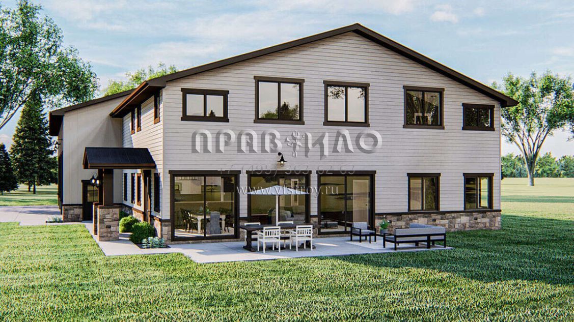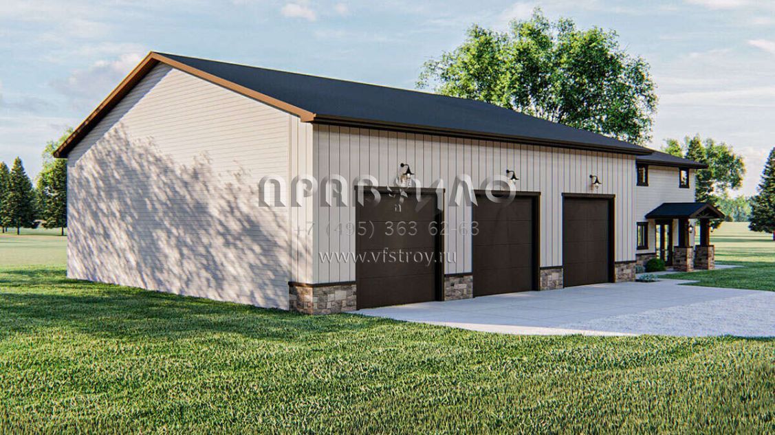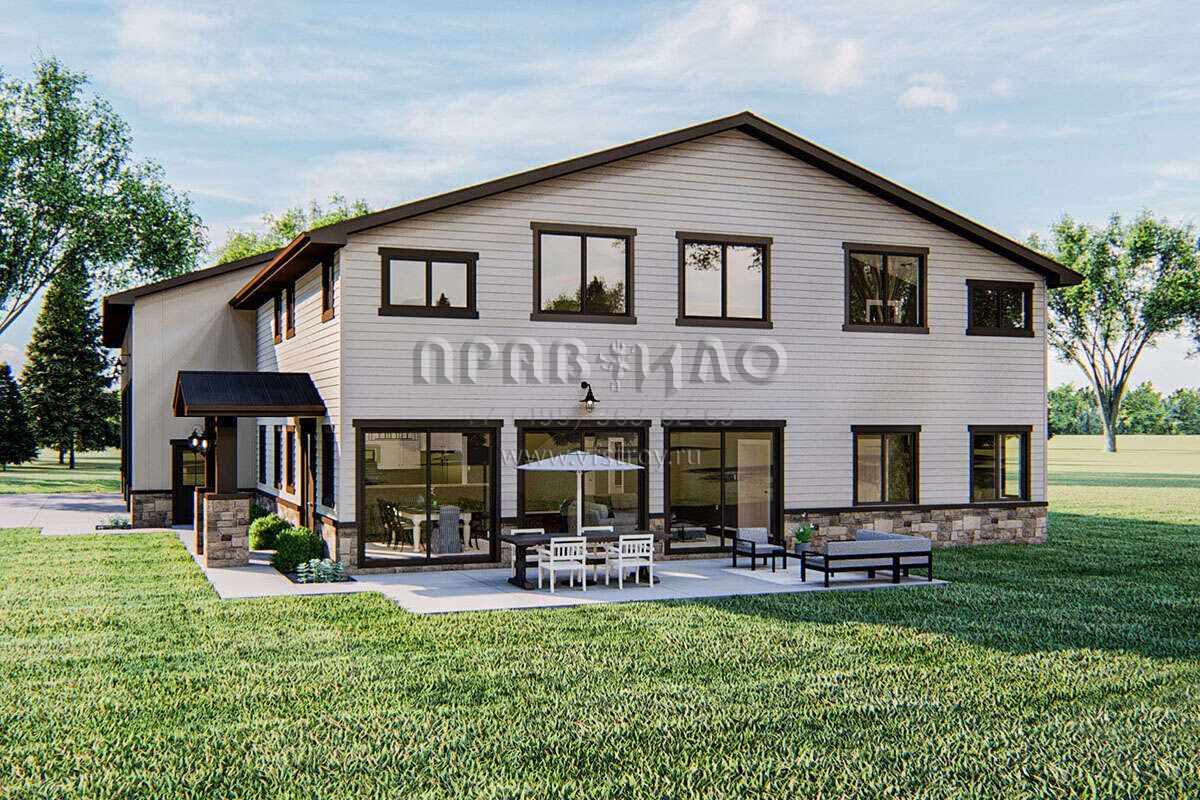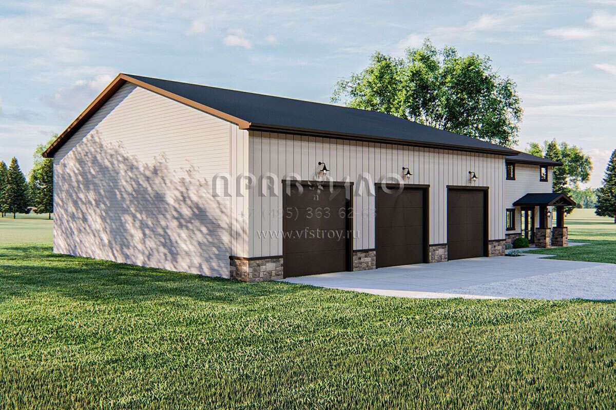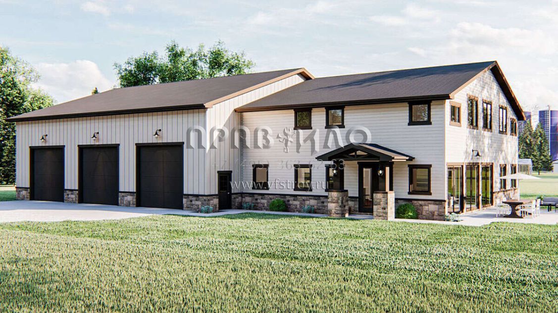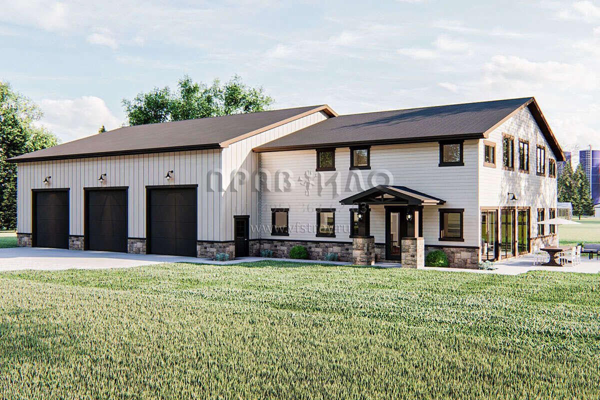 Проект двухэтажного дома с гаражом на три и более машин в стиле БарнХаус S5-258 (963-00432)