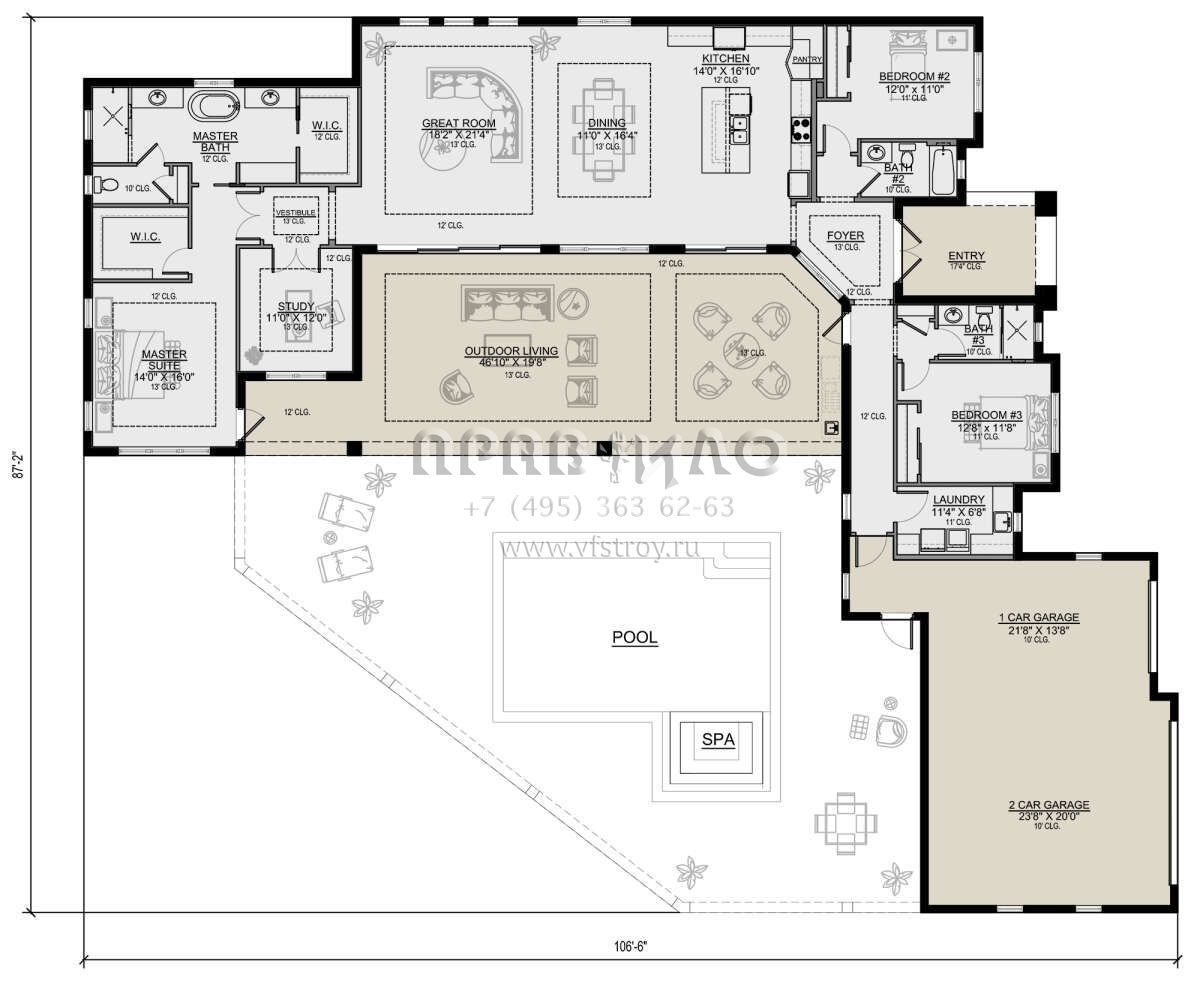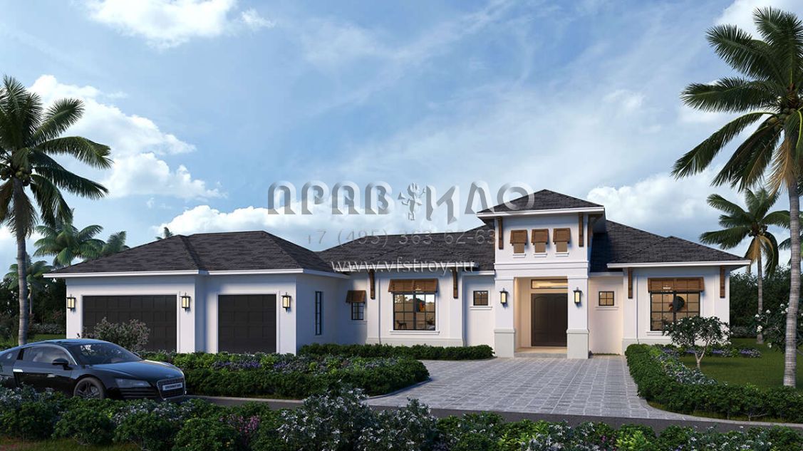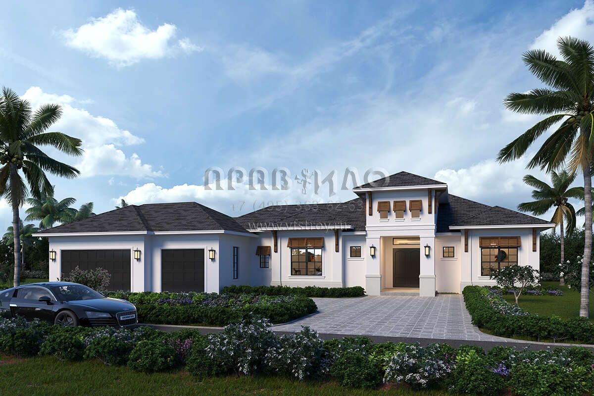 Проект одноэтажного дома с гаражом на три и более машин в современном стиле S5-259 (5565-00072)