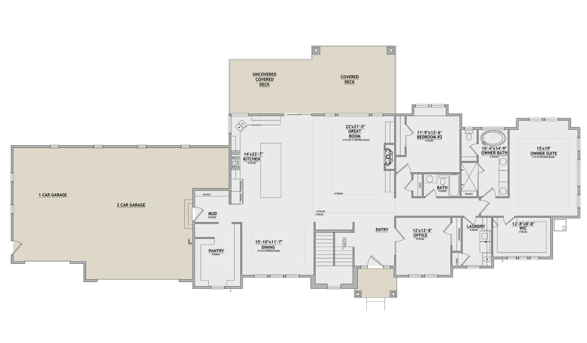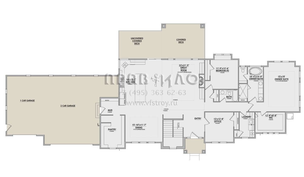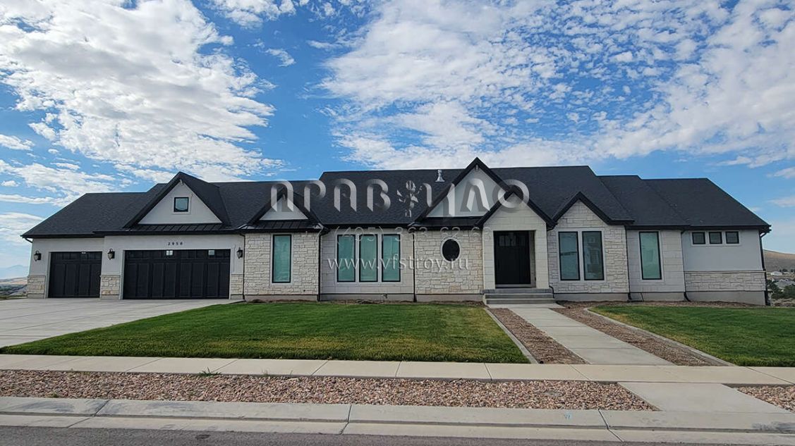 Проект одноэтажного дома с гаражом на три и более машин в стиле Ранчо S5-259 (8768-00048)