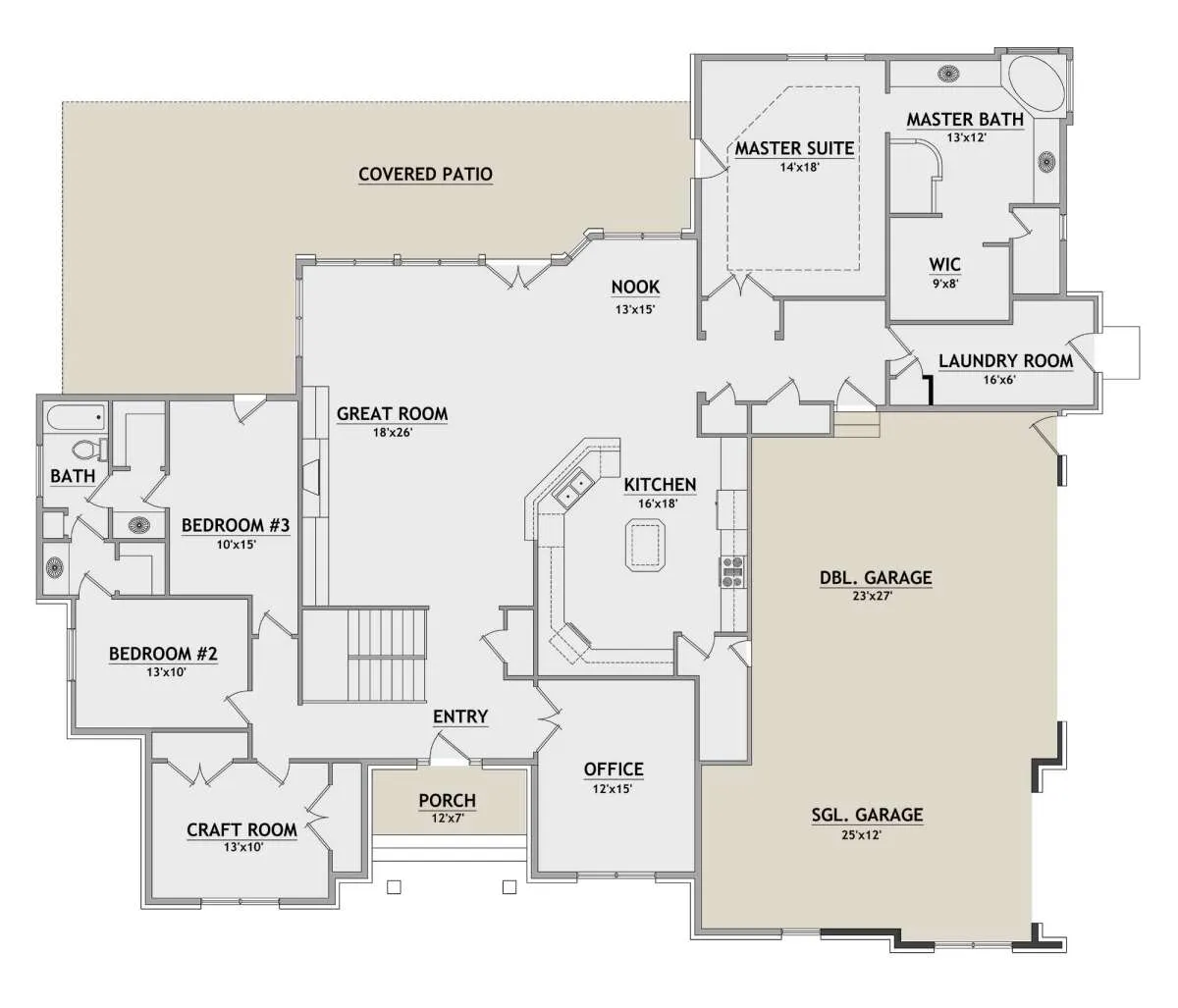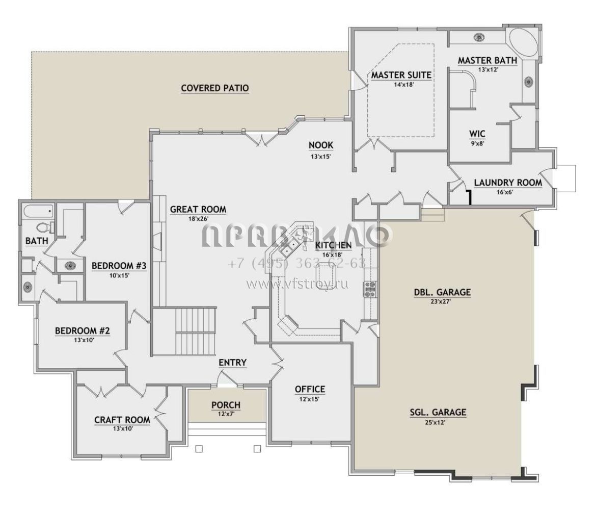 Проект одноэтажного дома с гаражом на три и более машин в стиле Ранчо S5-259 (8768-00051)