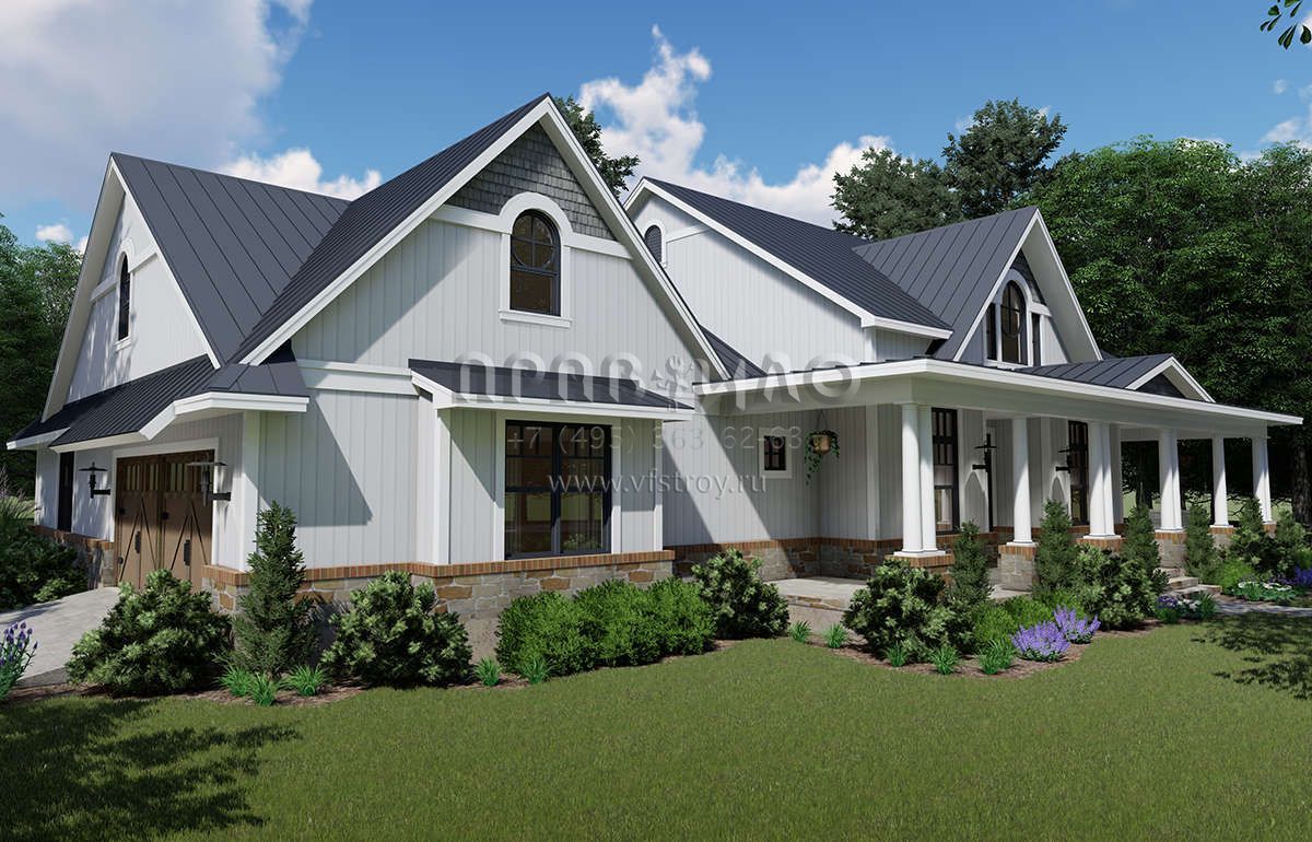 Проект одноэтажного дома с гаражом на две машины в стиле Ранчо S5-259 (9401-00098)