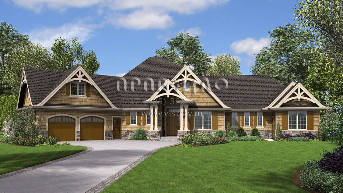 Проект одноэтажного дома с гаражом на две машины в американском стиле S5-260 (2559-00875)