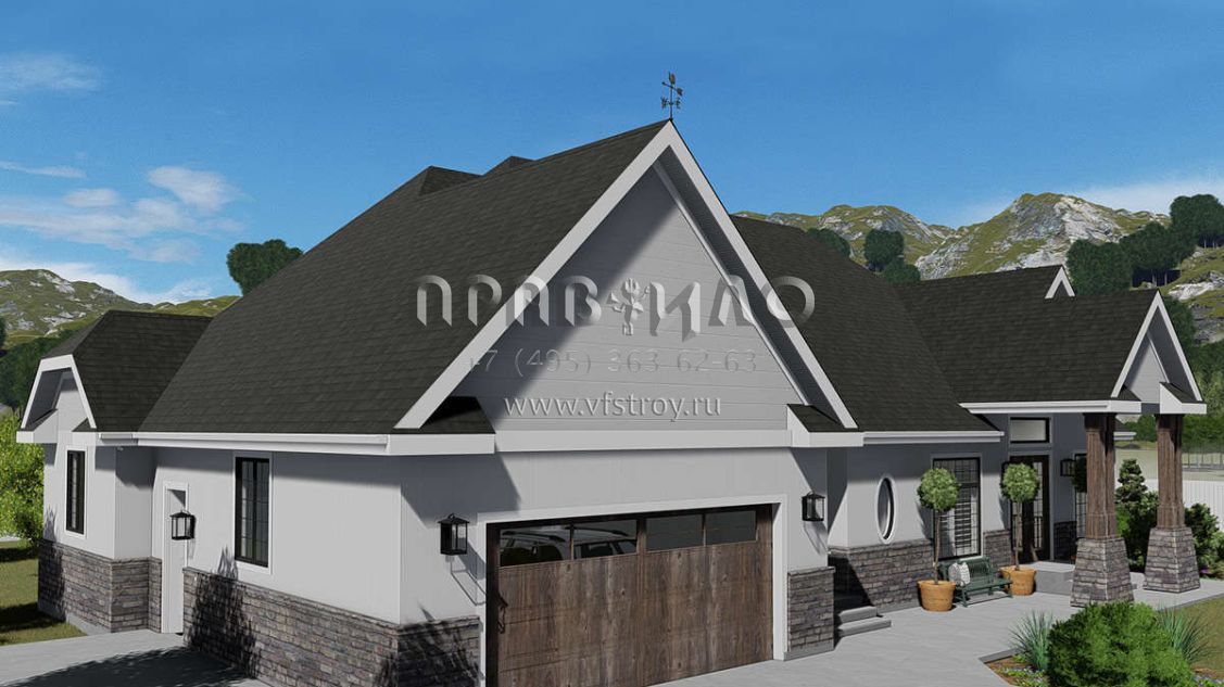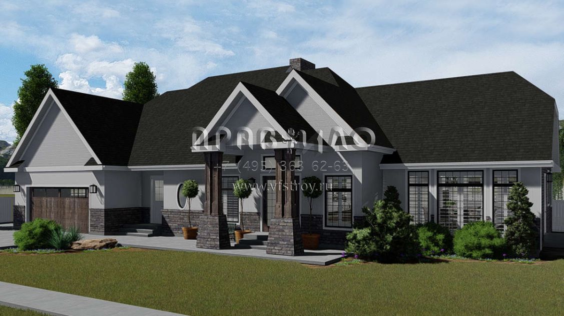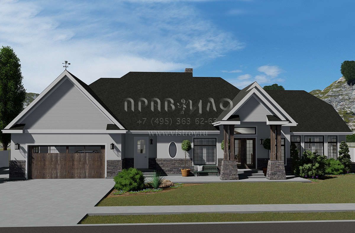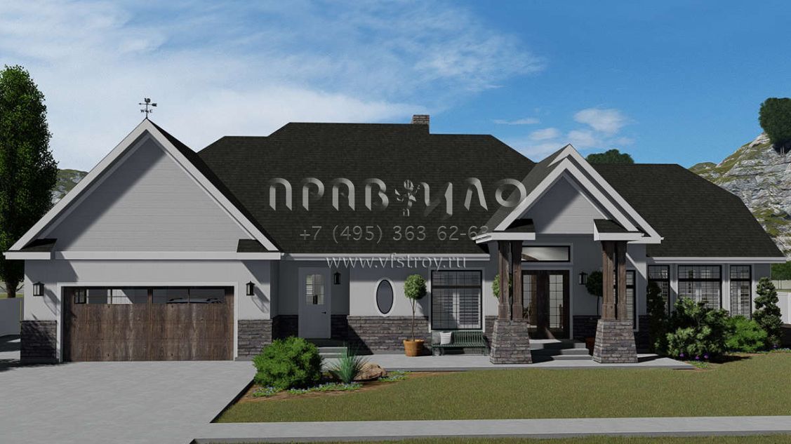 Проект одноэтажного дома с гаражом на две машины в стиле Ранчо S5-260 (2802-00038)
