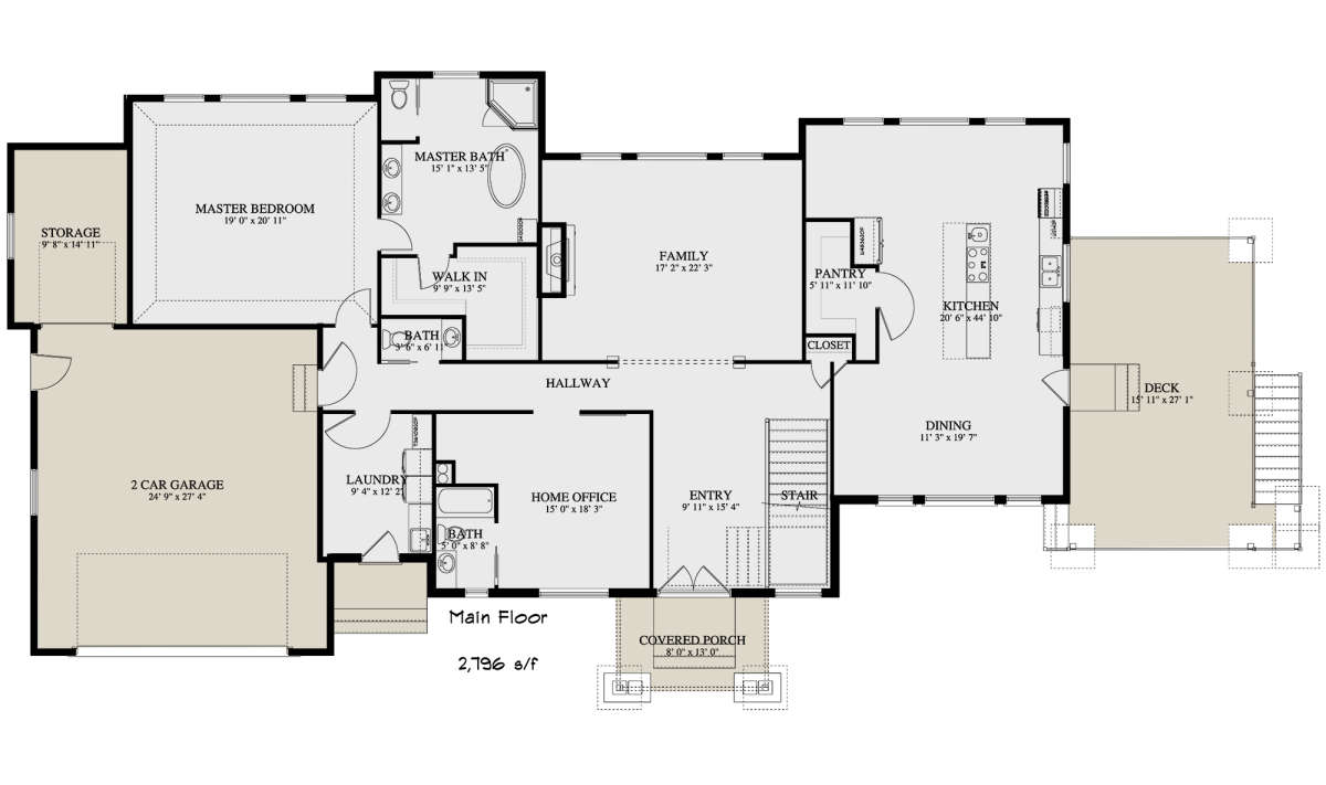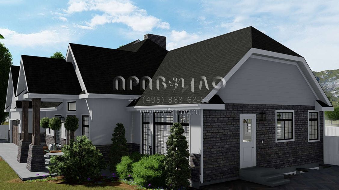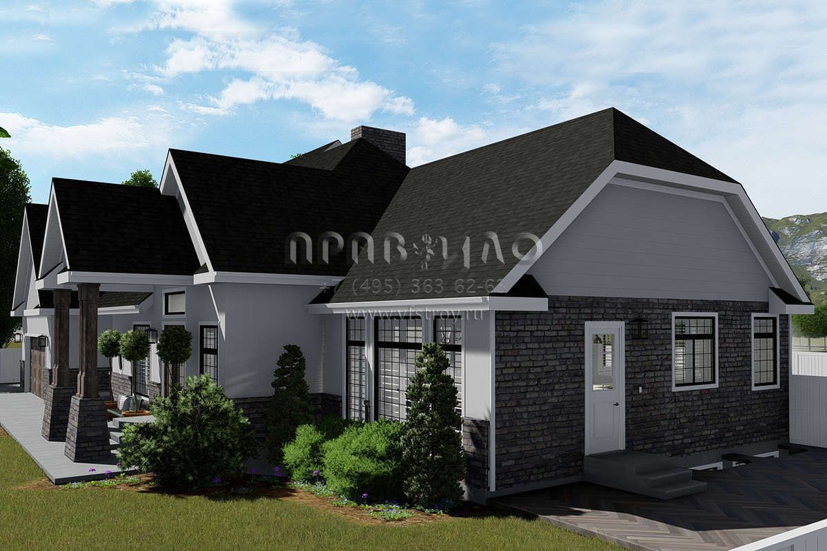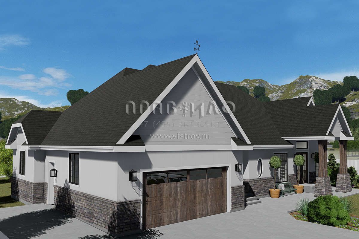 Проект одноэтажного дома с гаражом на две машины в стиле Ранчо S5-260 (2802-00038)