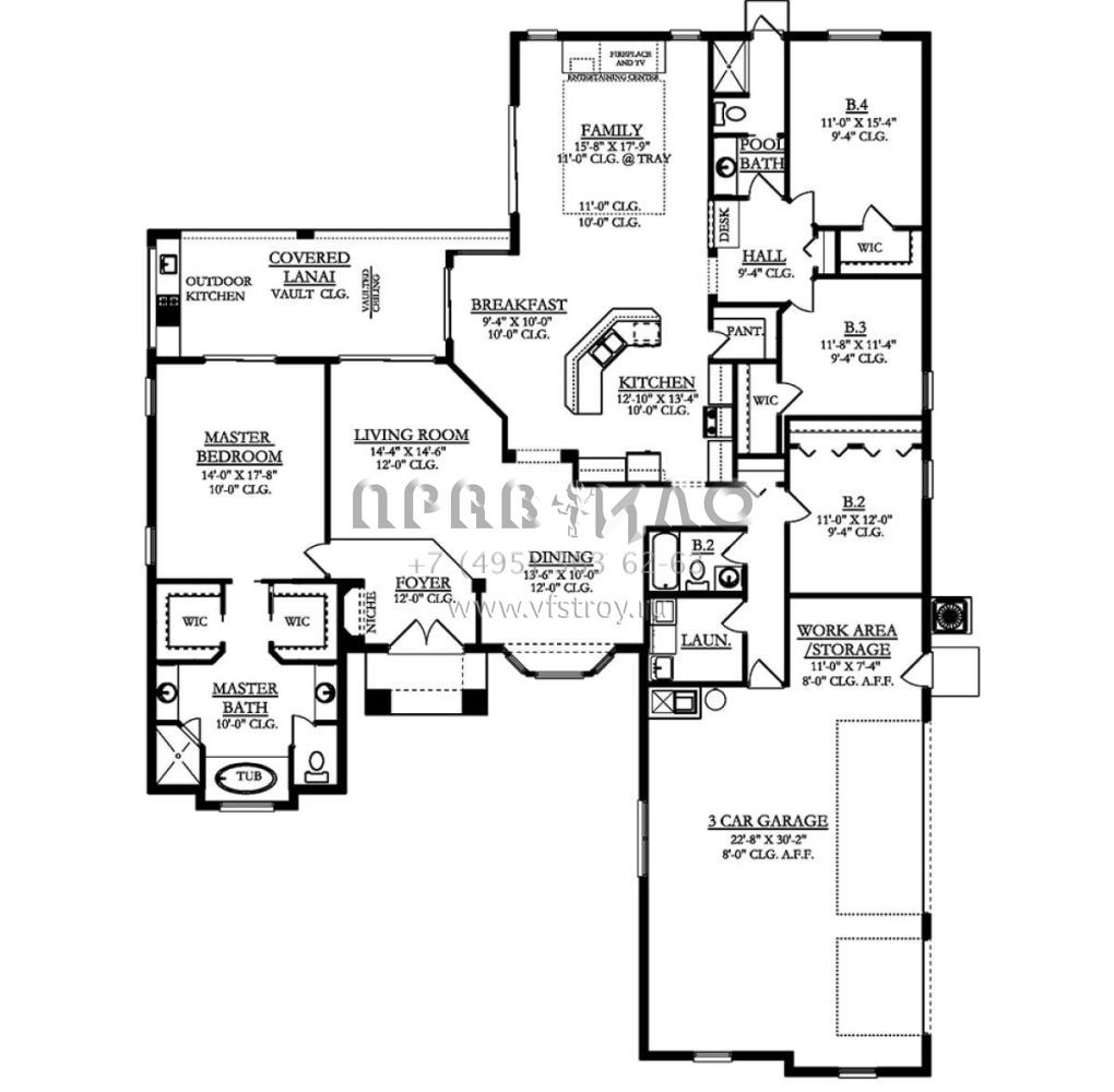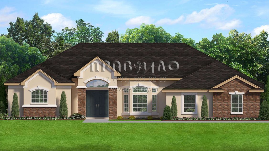 Проект одноэтажного дома с гаражом на три и более машин в английском стиле S5-260 (3978-00170)
