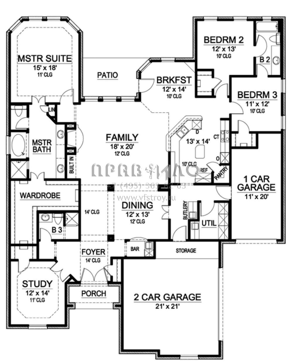 Проект одноэтажного дома с гаражом на три и более машин в английском стиле S5-260 (5445-00034)