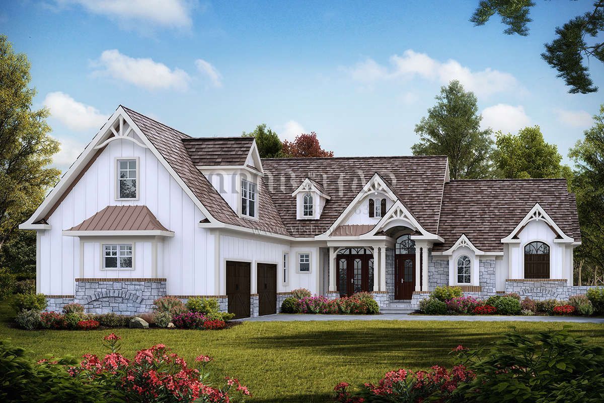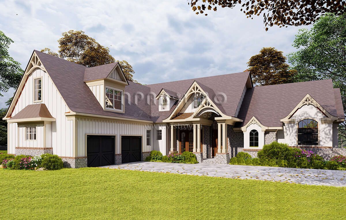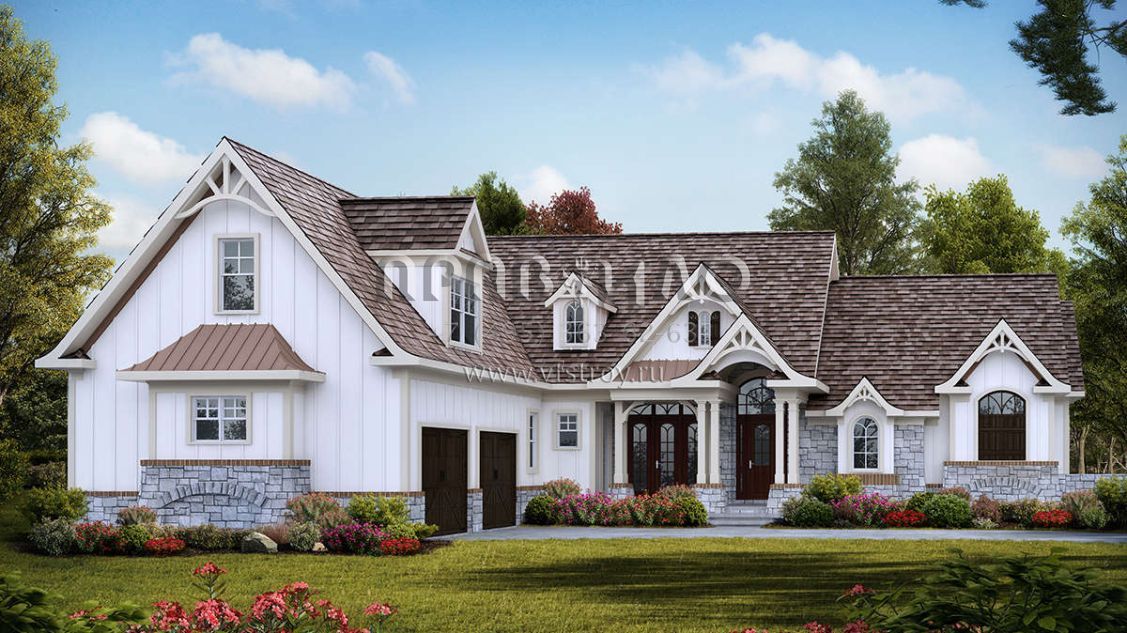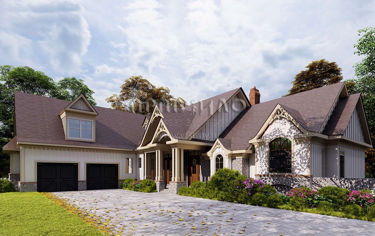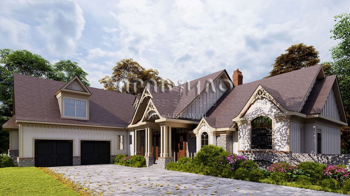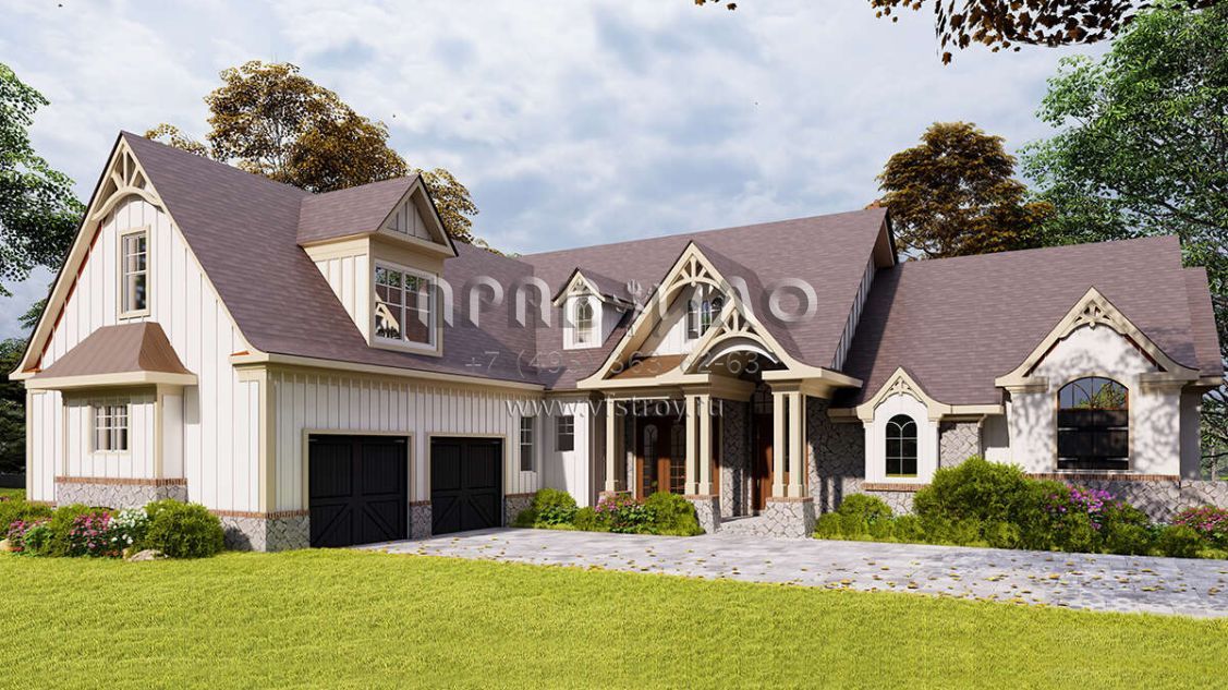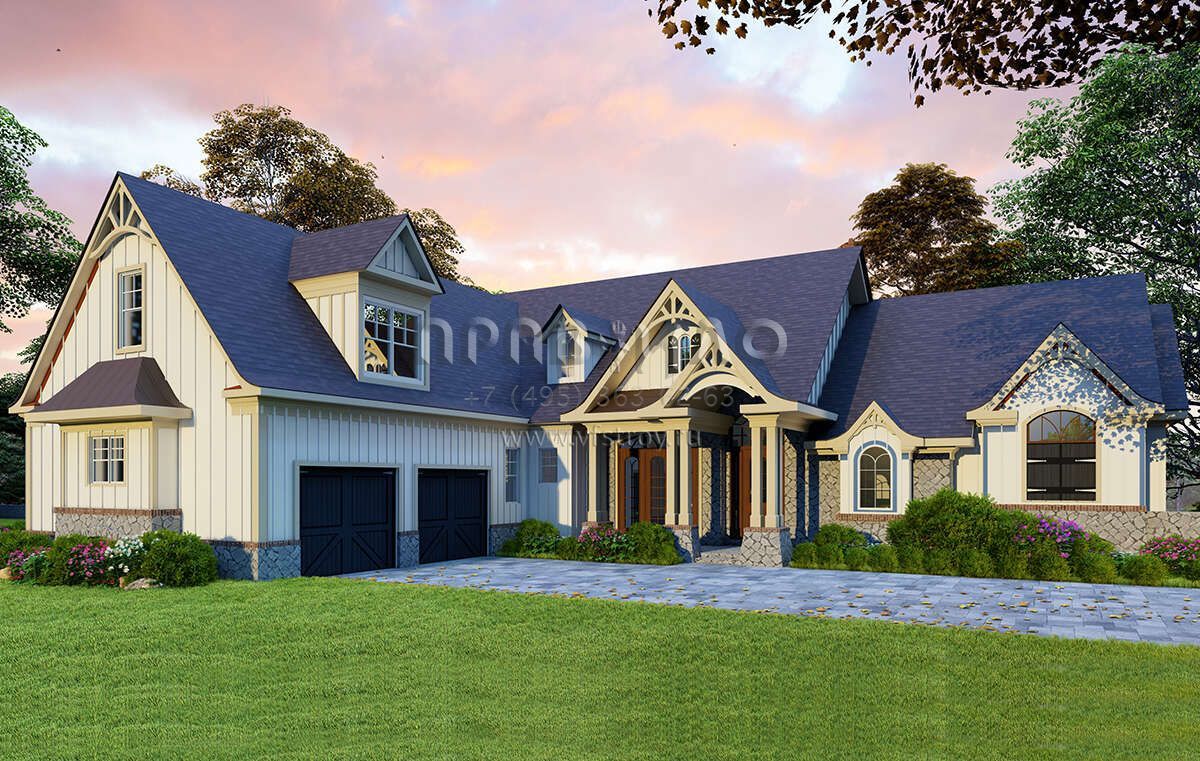 Проект двухэтажного дома с гаражом на две машины в американском стиле S5-260 (699-00129)