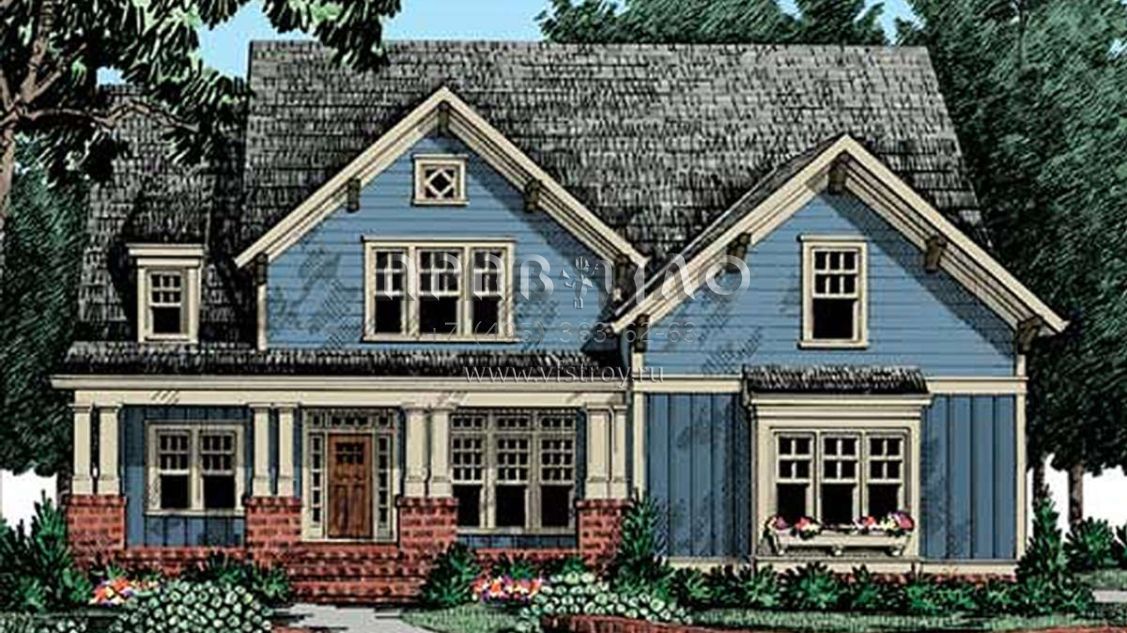 Проект двухэтажного дома с гаражом на две машины в стиле Ранчо S5-260 (8594-00293)