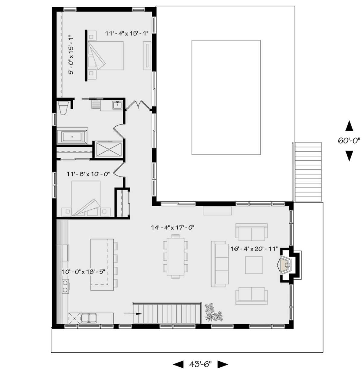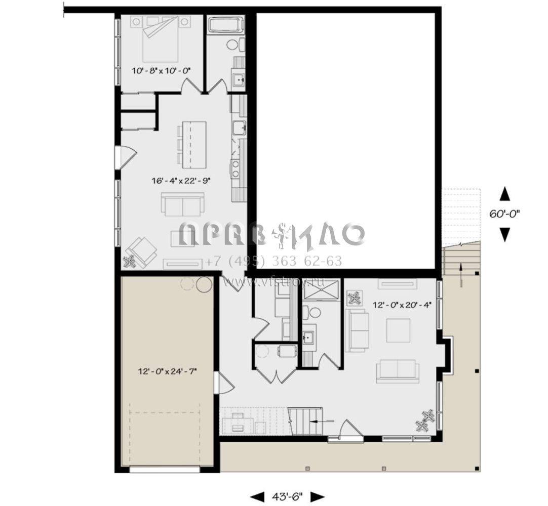 Проект одноэтажного дома с гаражом на одну машину в современном стиле S5-261 (034-01201)