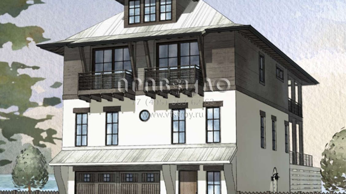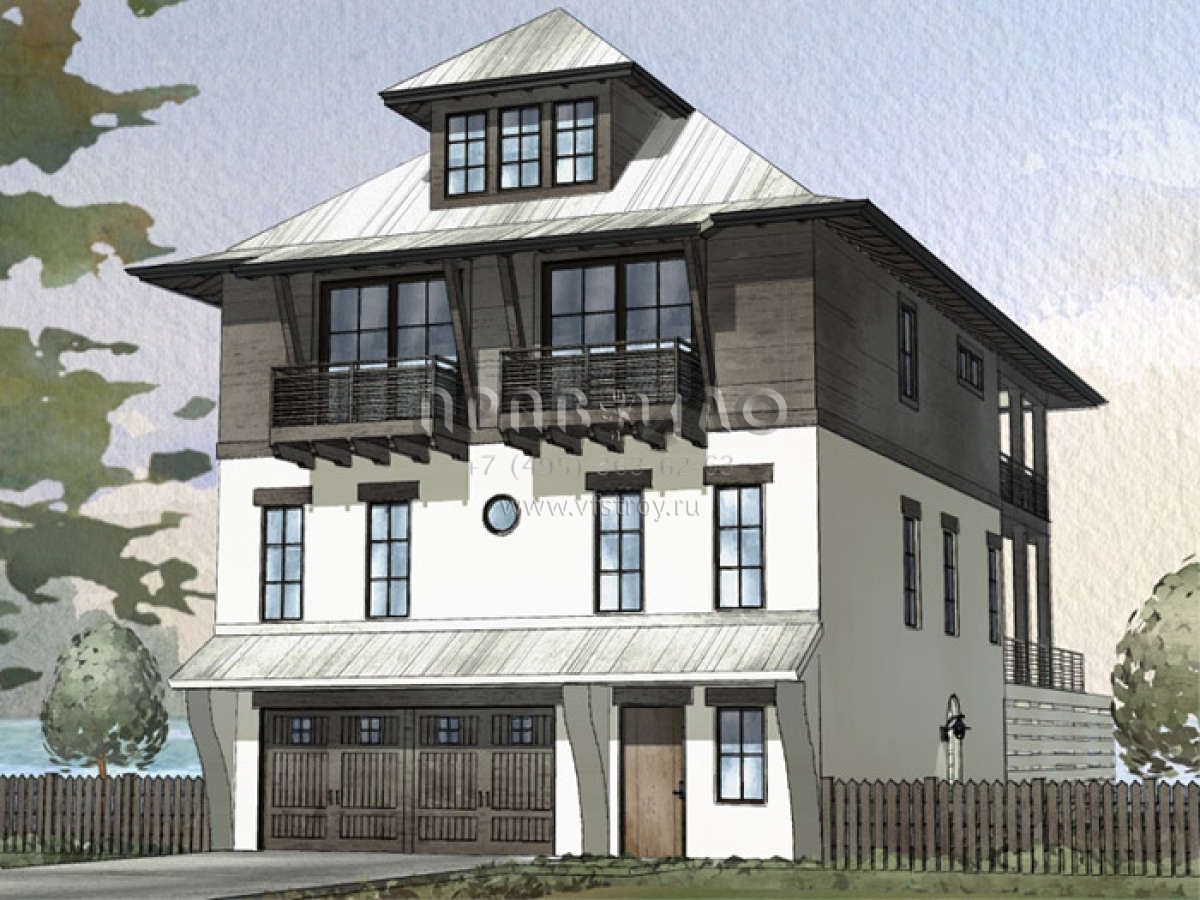 Проект двухэтажного дома с гаражом на две машины в прибрежном стиле S5-261 (1637-00106)