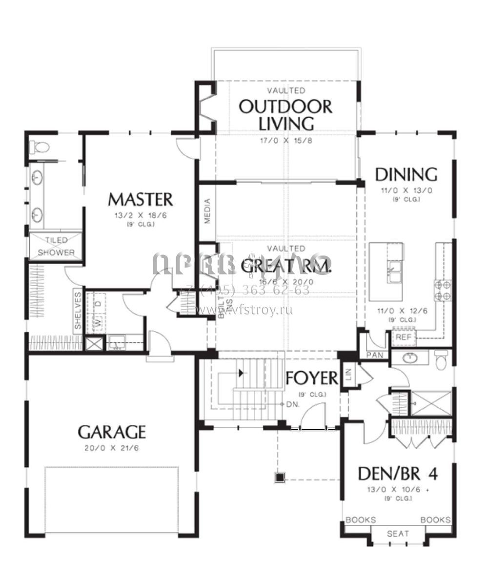 S5-261 (2559-00145) Это иностранный проект, для которого требуется адаптация под нормы, действующие в Российской Федерации. Вы видите проект дома в стиле Ранчо. В этом доме сочетаются черты сельской постройки и аскетичность лофта. Внутри жильцы смогут проводить время с максимальным комфортом. Обратим внимание, что сейчас на планировках все размеры представлены в футах. Для перевода в метры вам необходимо значение в футах умножить на 0,3048.