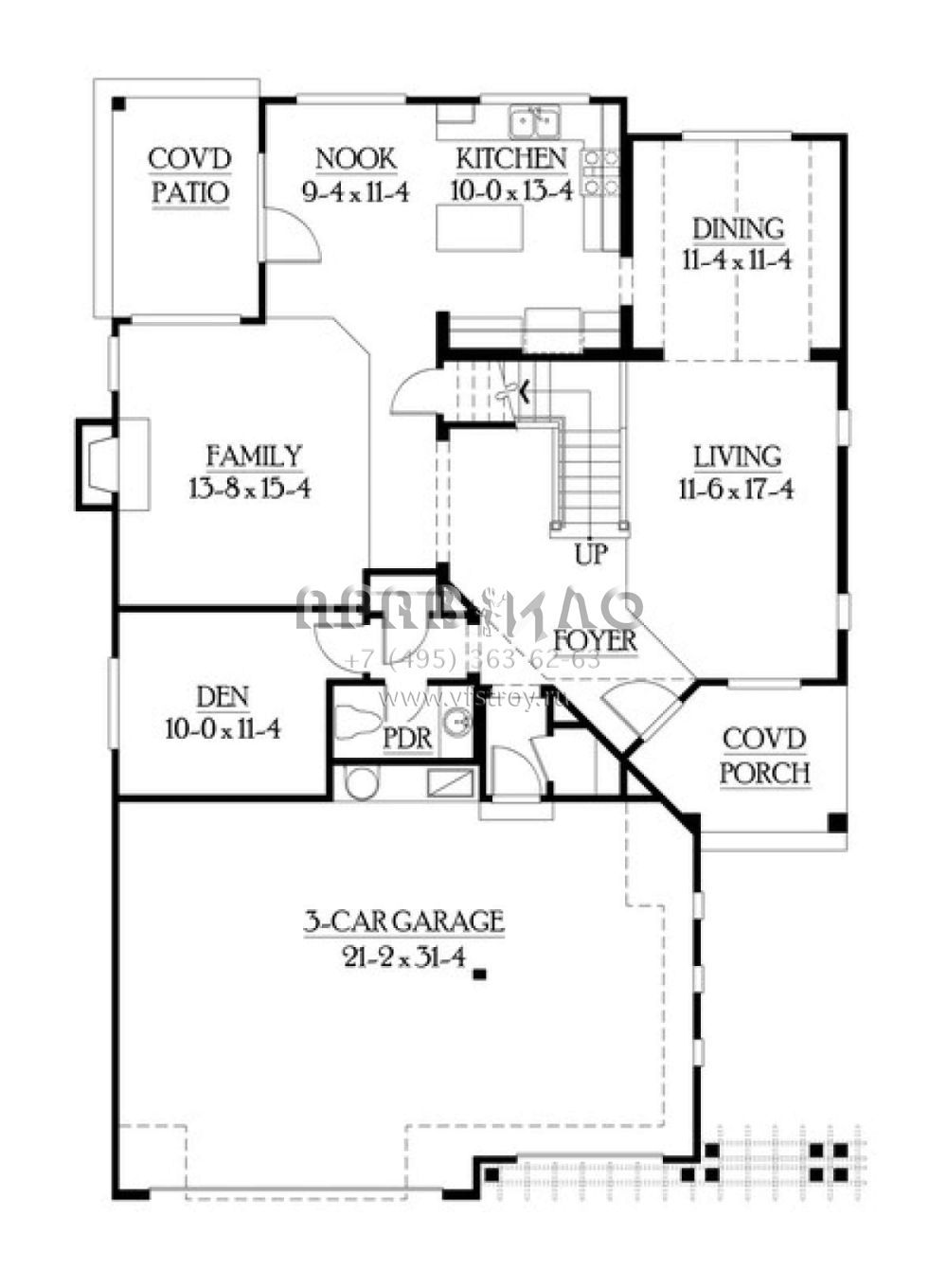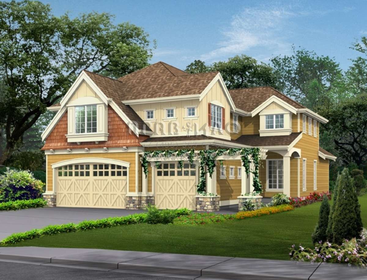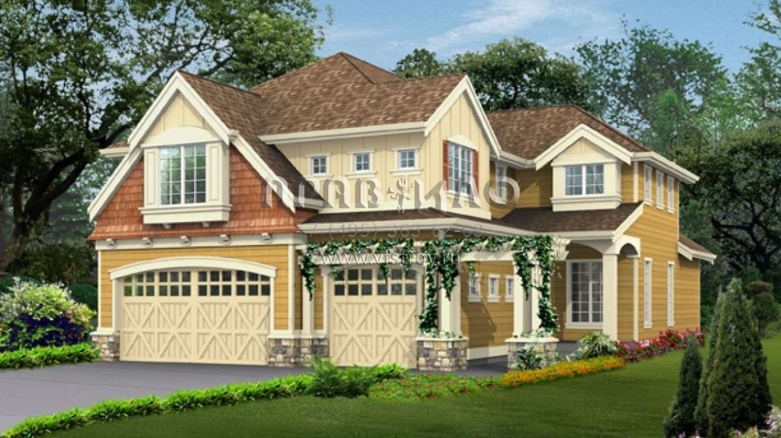 Проект двухэтажного дома с гаражом на три и более машин в американском стиле S5-261 (341-00007)