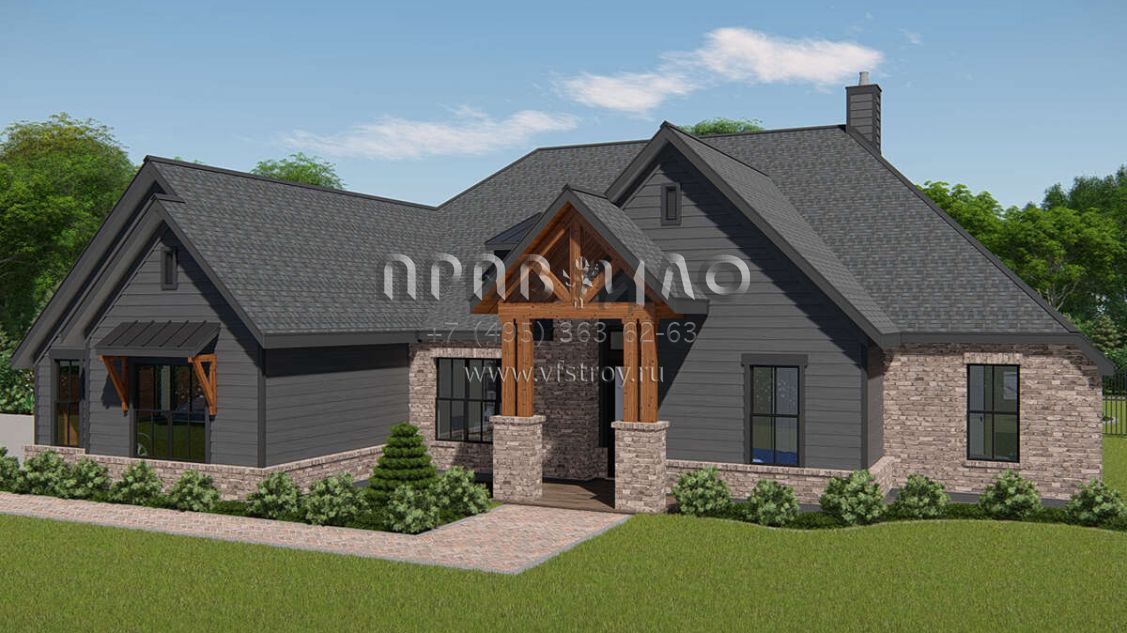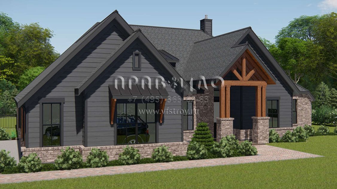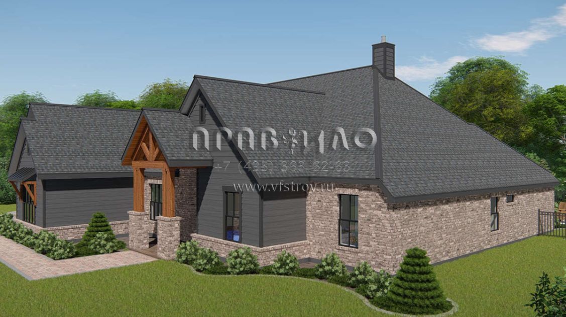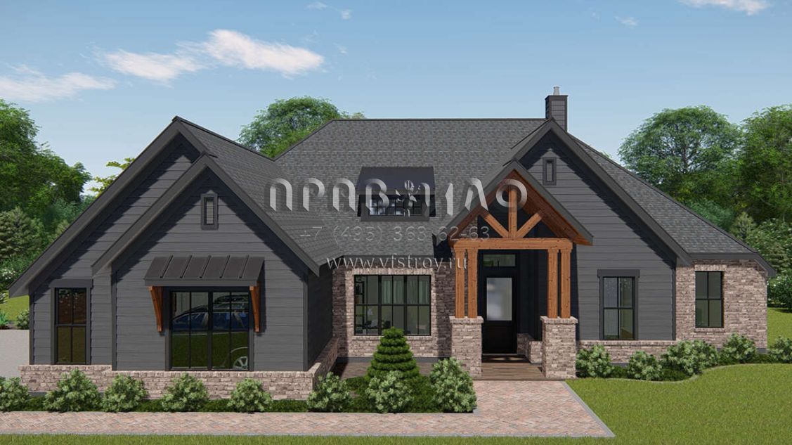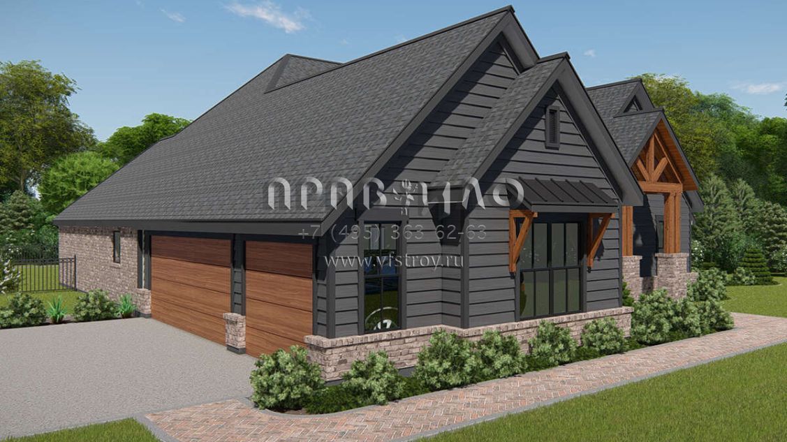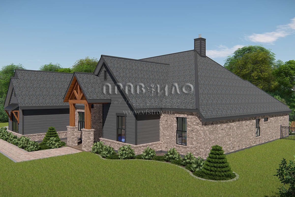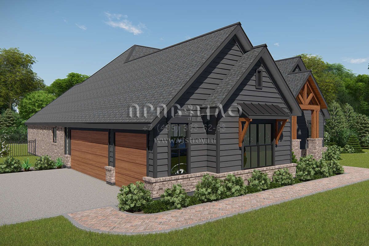 Проект одноэтажного дома с гаражом на три и более машин в американском стиле S5-261 (3571-00015)