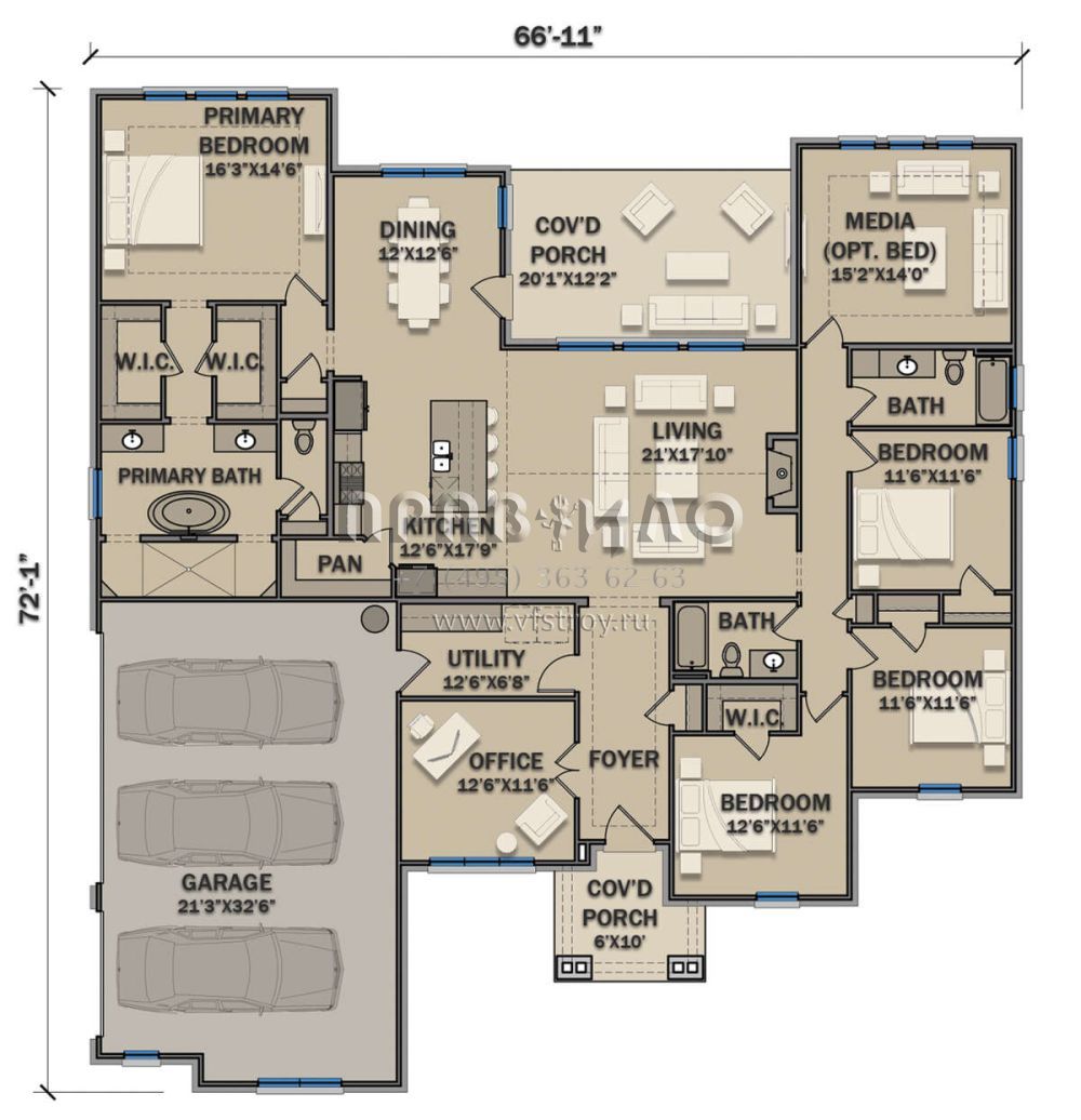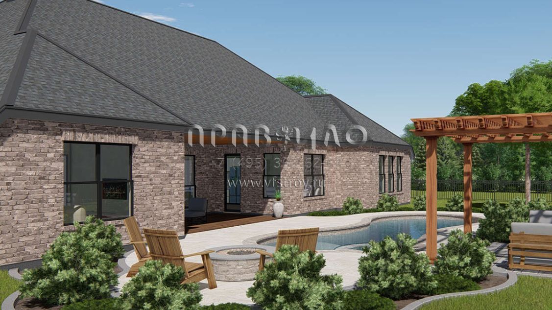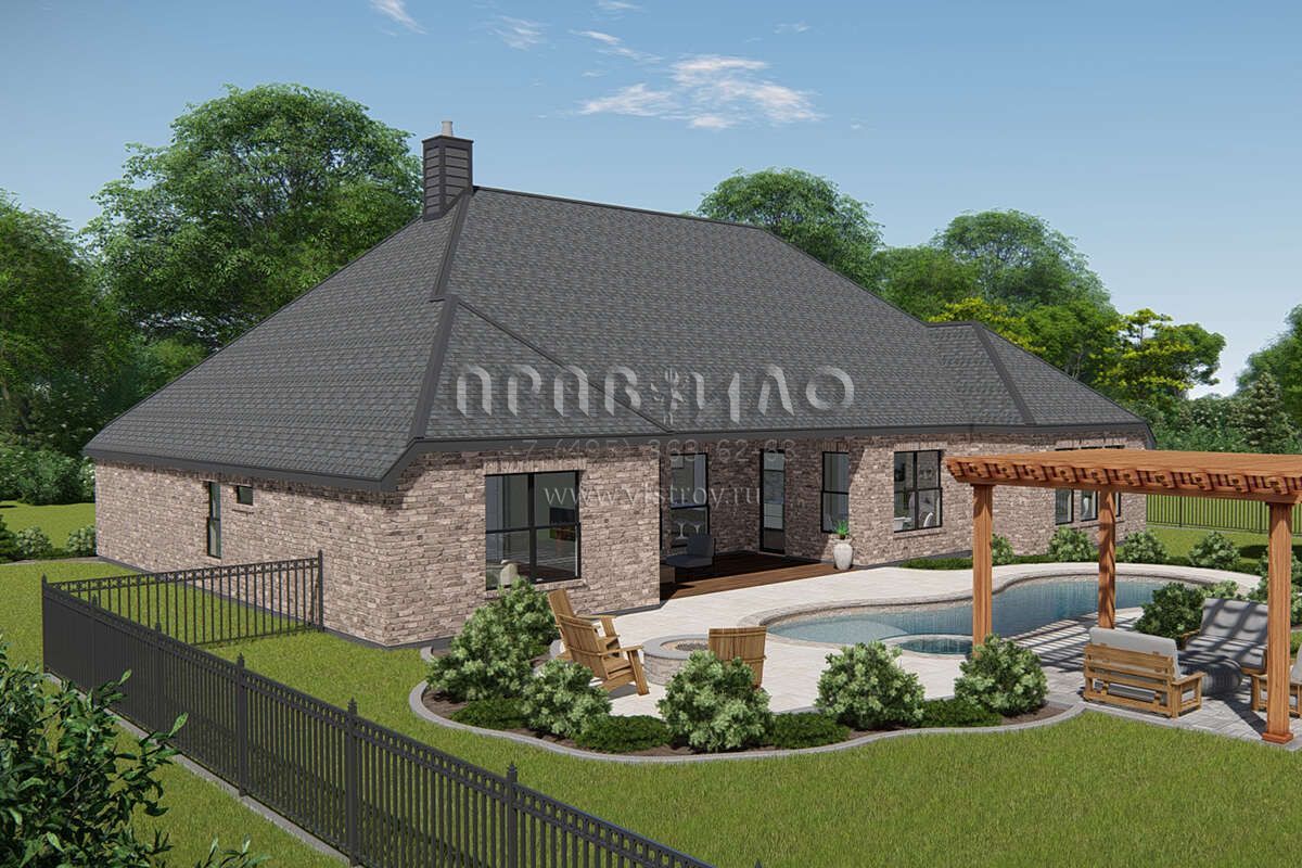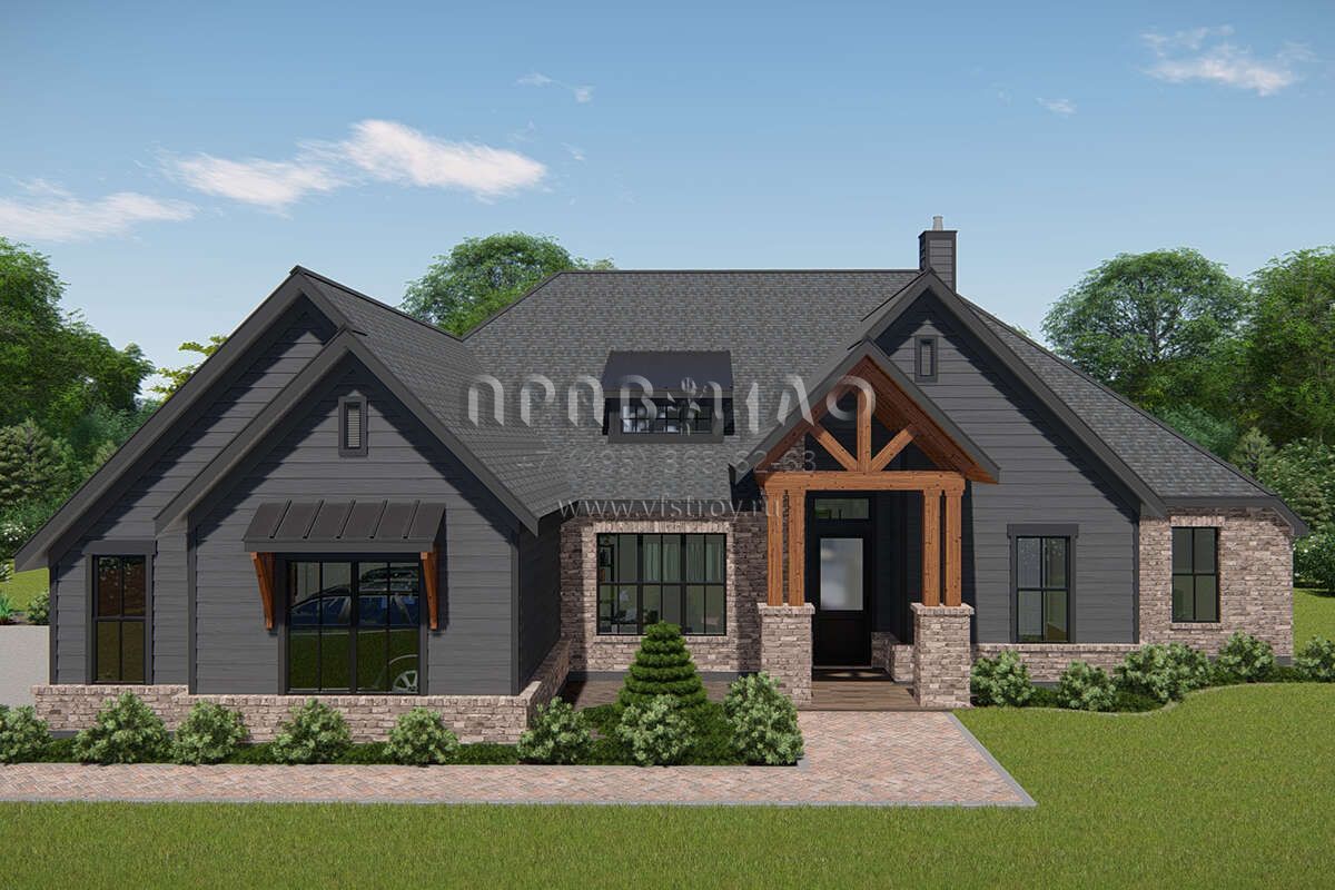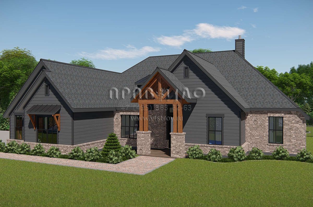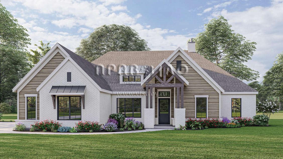 Проект одноэтажного дома с гаражом на три и более машин в американском стиле S5-261 (3571-00015)