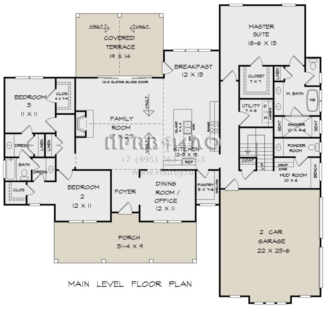 S5-261 (6082-00215) Это иностранный проект, для которого требуется адаптация под нормы, действующие в Российской Федерации. Вы видите проект дома в стиле Ранчо. В этом доме сочетаются черты сельской постройки и аскетичность лофта. Внутри жильцы смогут проводить время с максимальным комфортом. Обратим внимание, что сейчас на планировках все размеры представлены в футах. Для перевода в метры вам необходимо значение в футах умножить на 0,3048.